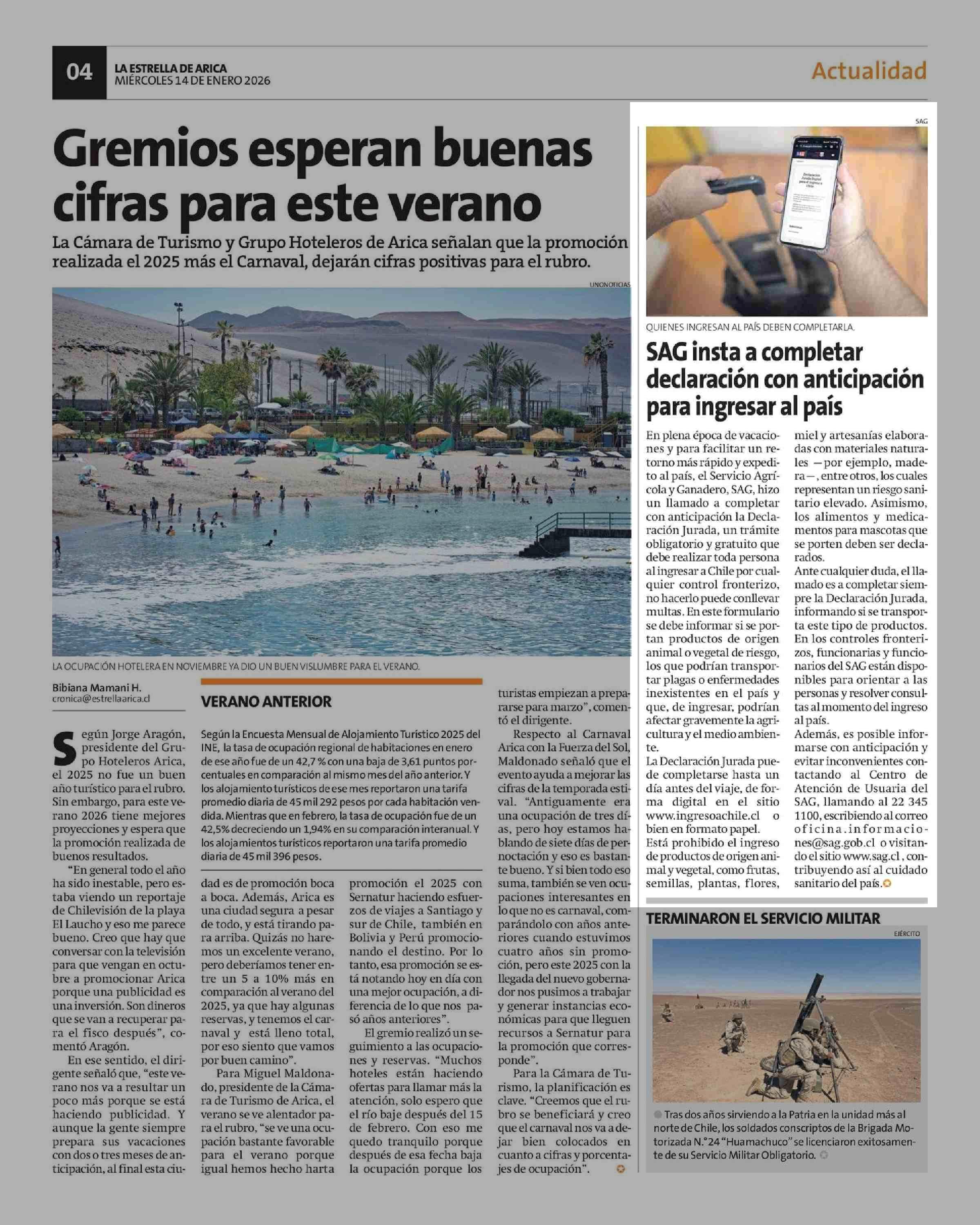 | Fecha: | 14-01-2026 | Sector: | Noticia general | Región: | Región de Arica y Parinacota |