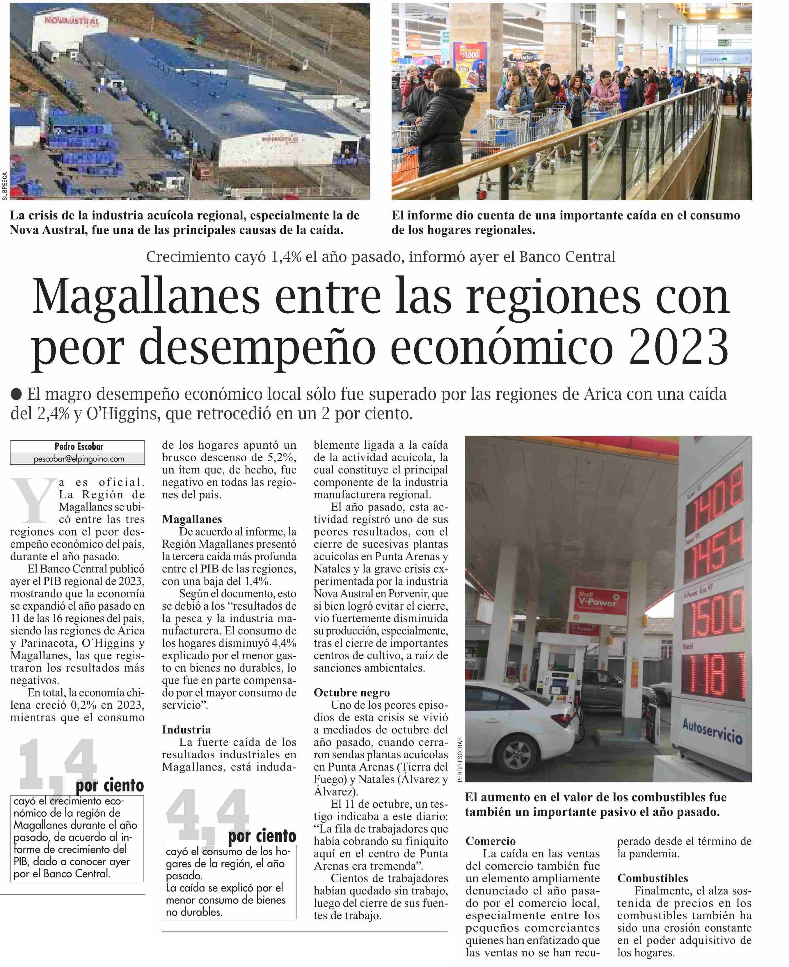 Magallanes entre las regiones con peor desempeño económico 2023 24-04-2024 El Pingüino |