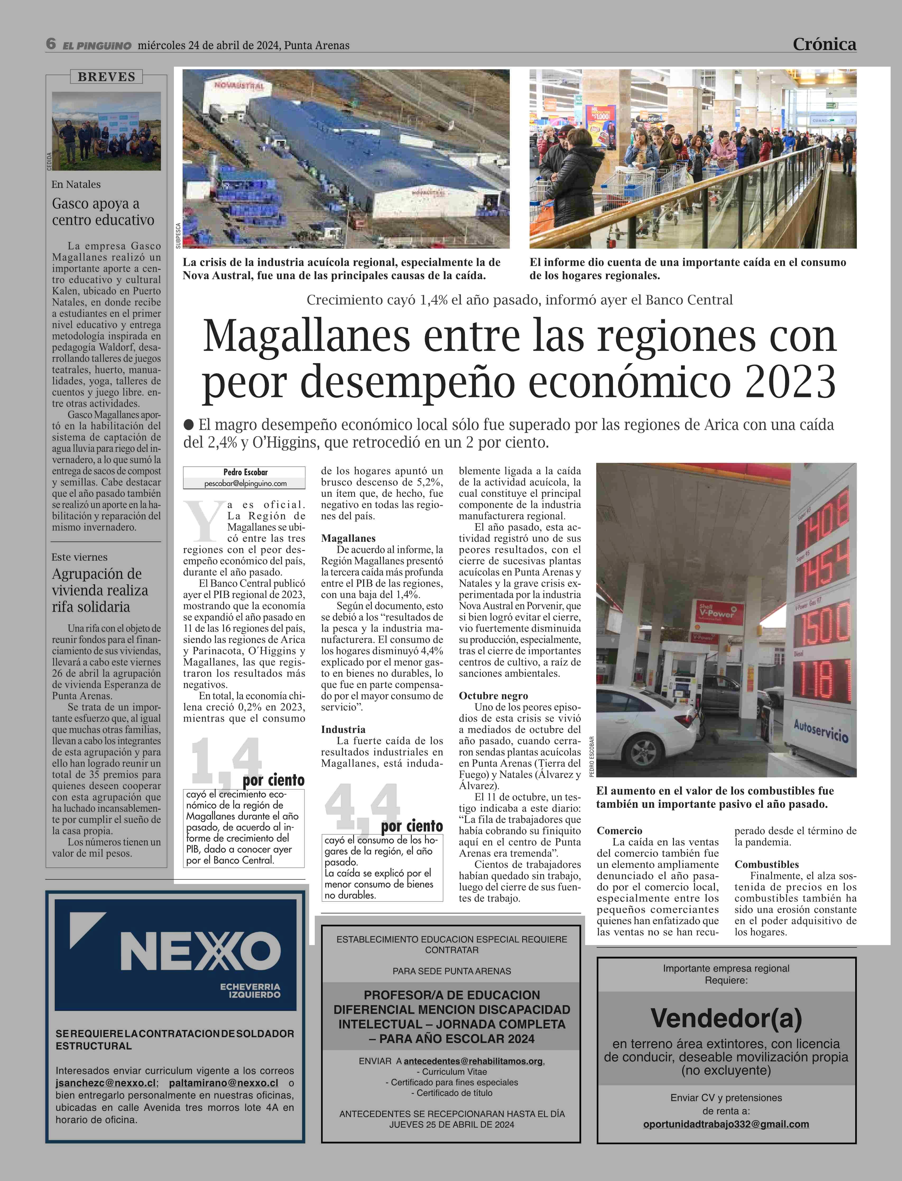 | Título: | Magallanes entre las regiones con peor desempeño económico 2023 |