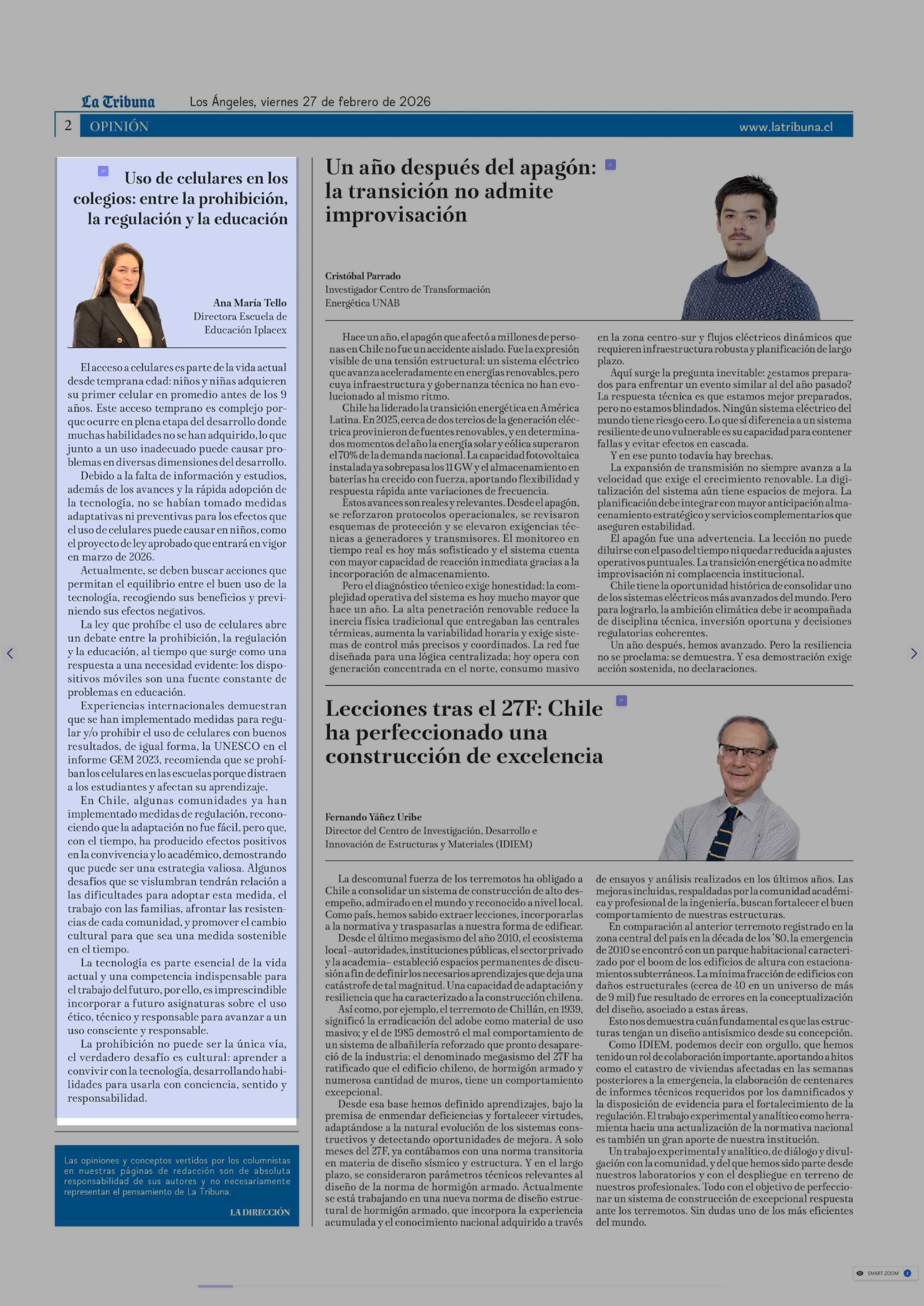Fecha: 27-02-2026 Sector: Columnas de Opinión Región: Región del Bío-Bío