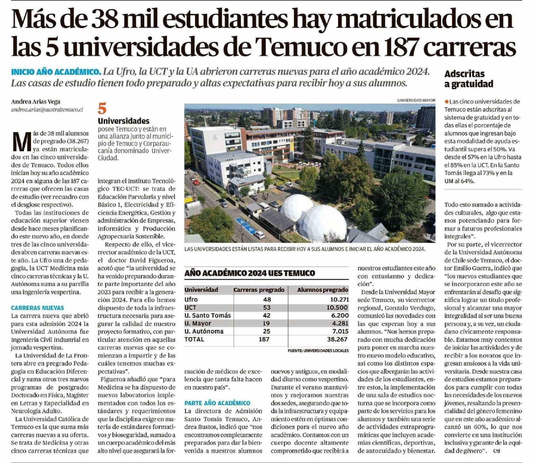 Más de 38 mil estudiantes hay matriculados en las 5 universidades de Temuco en 187 carreras 11-03-2024 El Austral de la Araucanía |