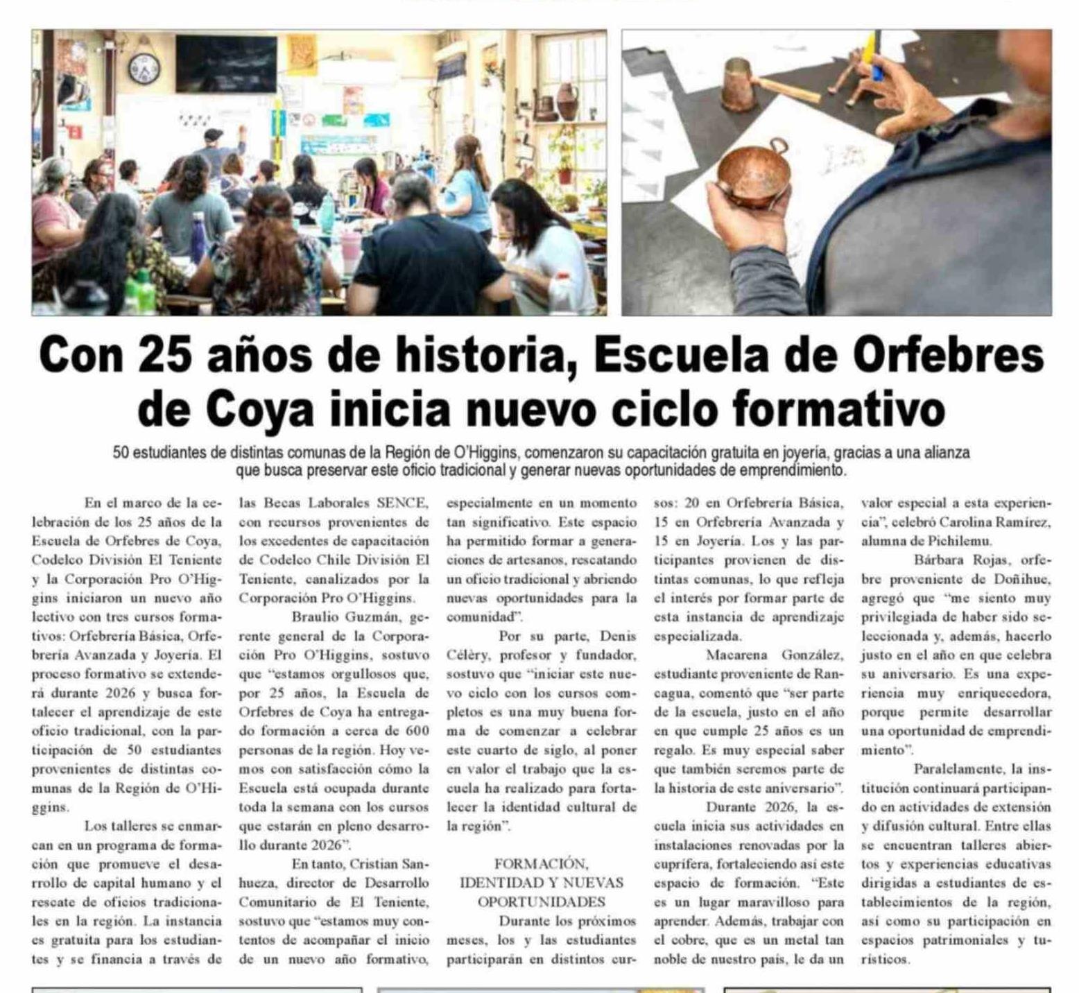Título: Con 25 años de historia, Escuela de Orfebres de Coya inicia nuevo ciclo formativo