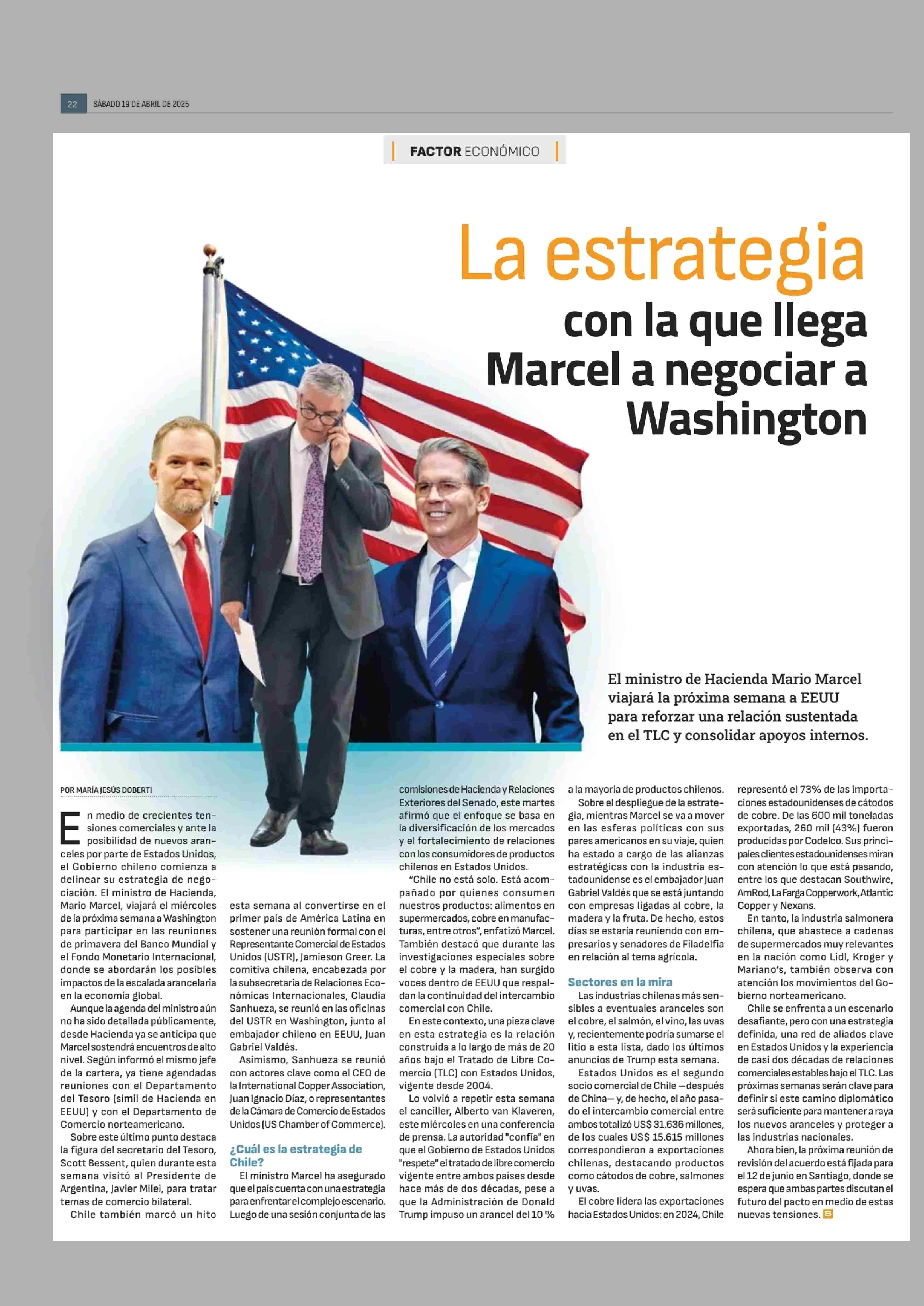 La estrategia con la que llega Marcel a negociar a Washington 19-04-2025 Diario Financiero |
