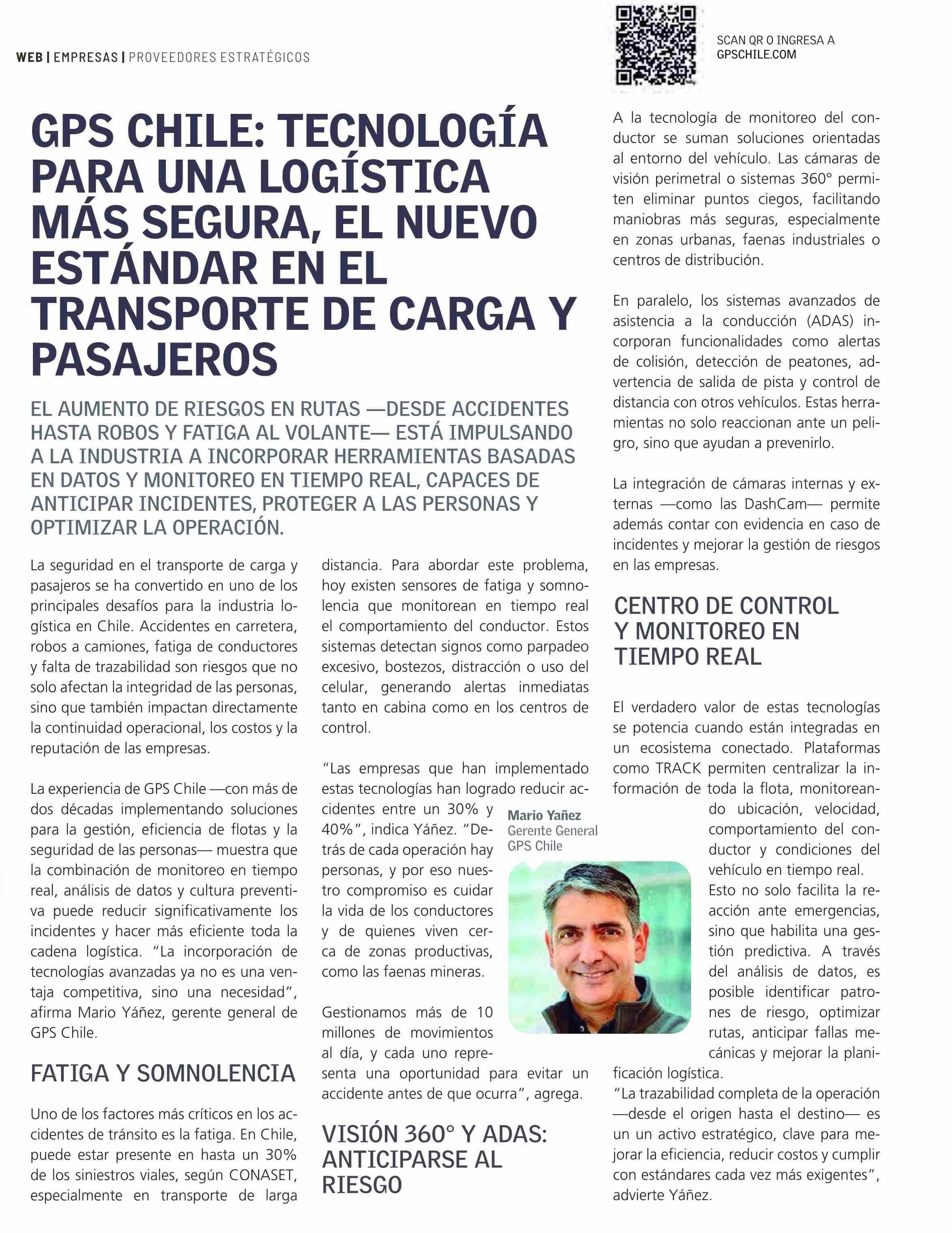GPS CHILE: TECNOLOGÍA PARA UNA LOGÍSTICA MÁS SEGURA, EL NUEVO ESTÁNDAR EN EL TRANSPORTE DE CARGA Y PASAJ EROS 23-04-2026 Revista Logistec |