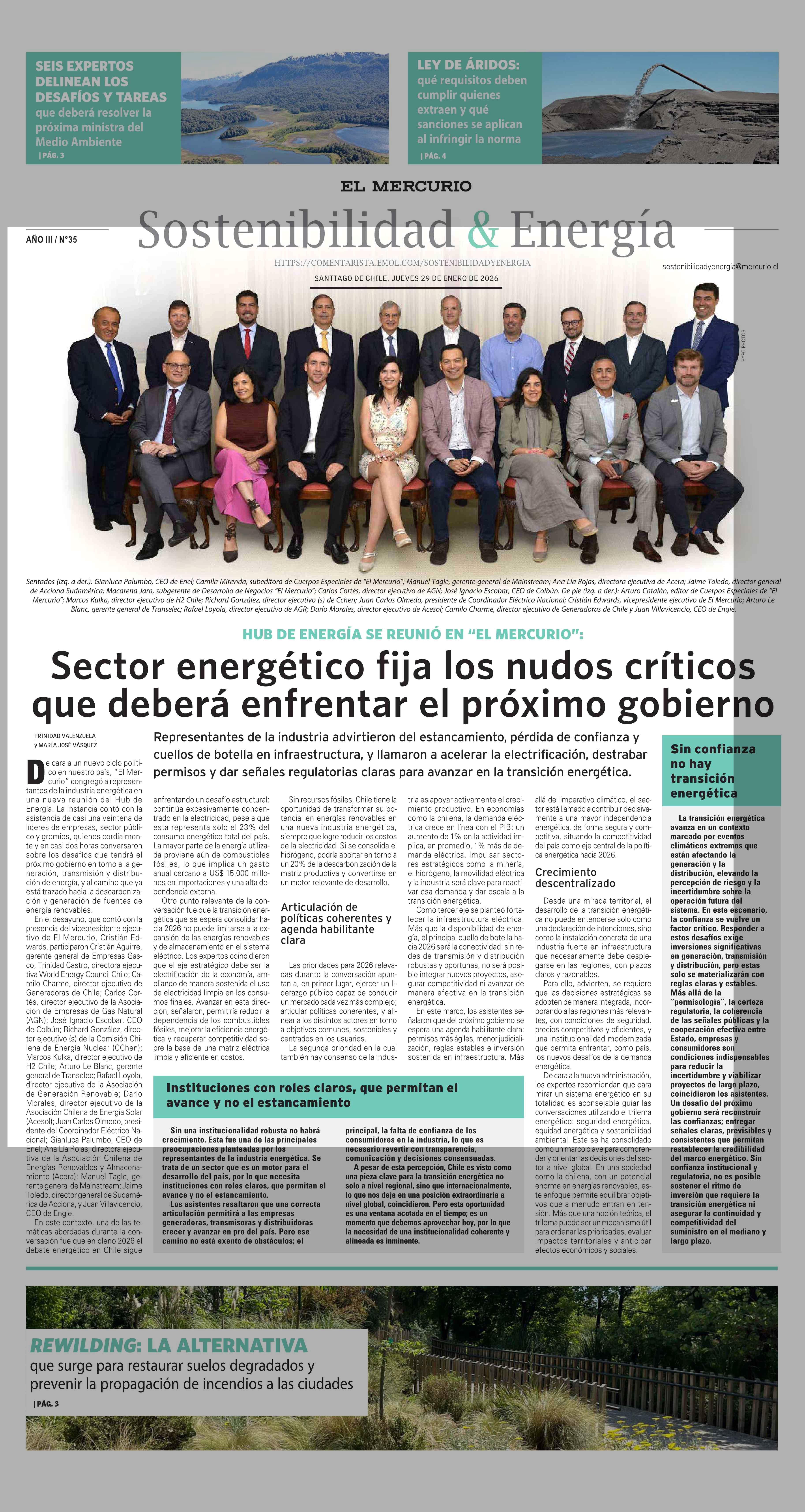 Sector energético fija los nudos críticos que deberá enfrentar el próximo gobierno 29-01-2026 El Mercurio |
