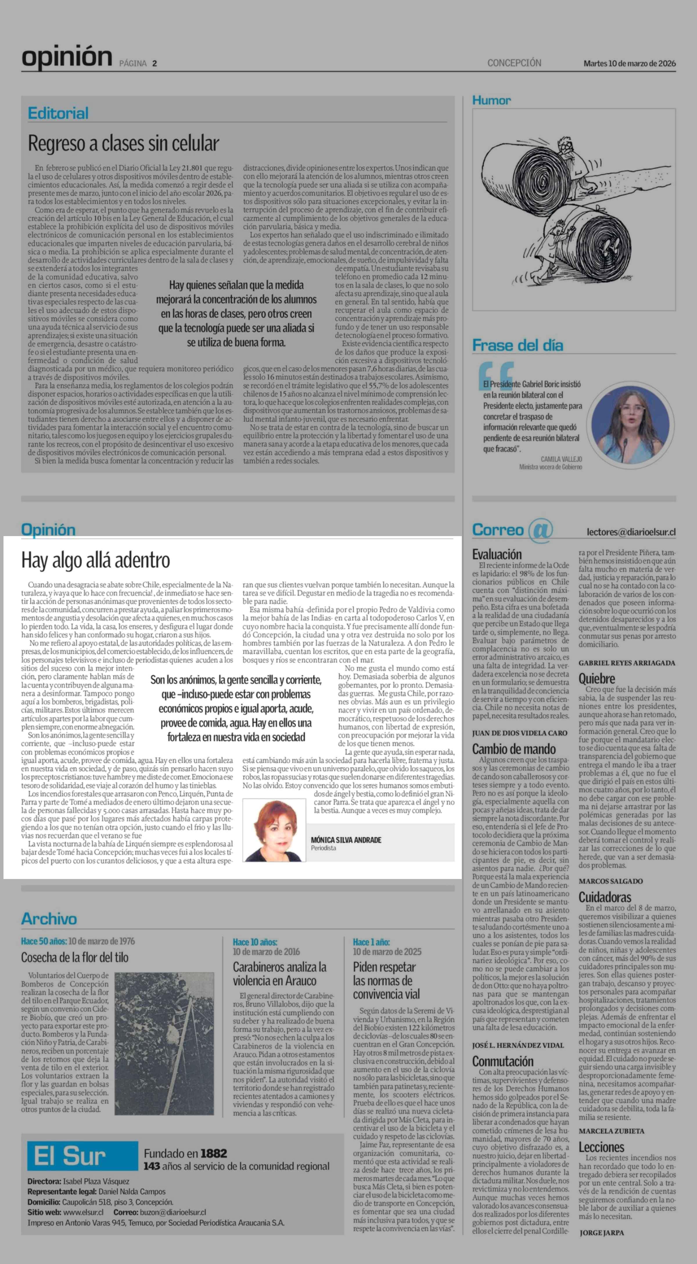 | Fecha: | 10-03-2026 | Sector: | Columnas de Opinión | Región: | Región del Bío-Bío |