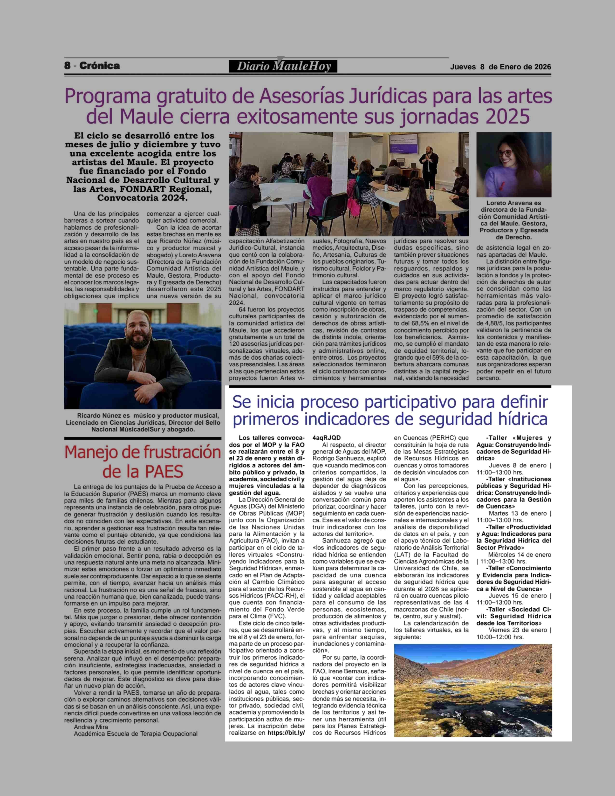 | Fecha: | 08-01-2026 | Sector: | Noticia general | Región: | Región del Maule |