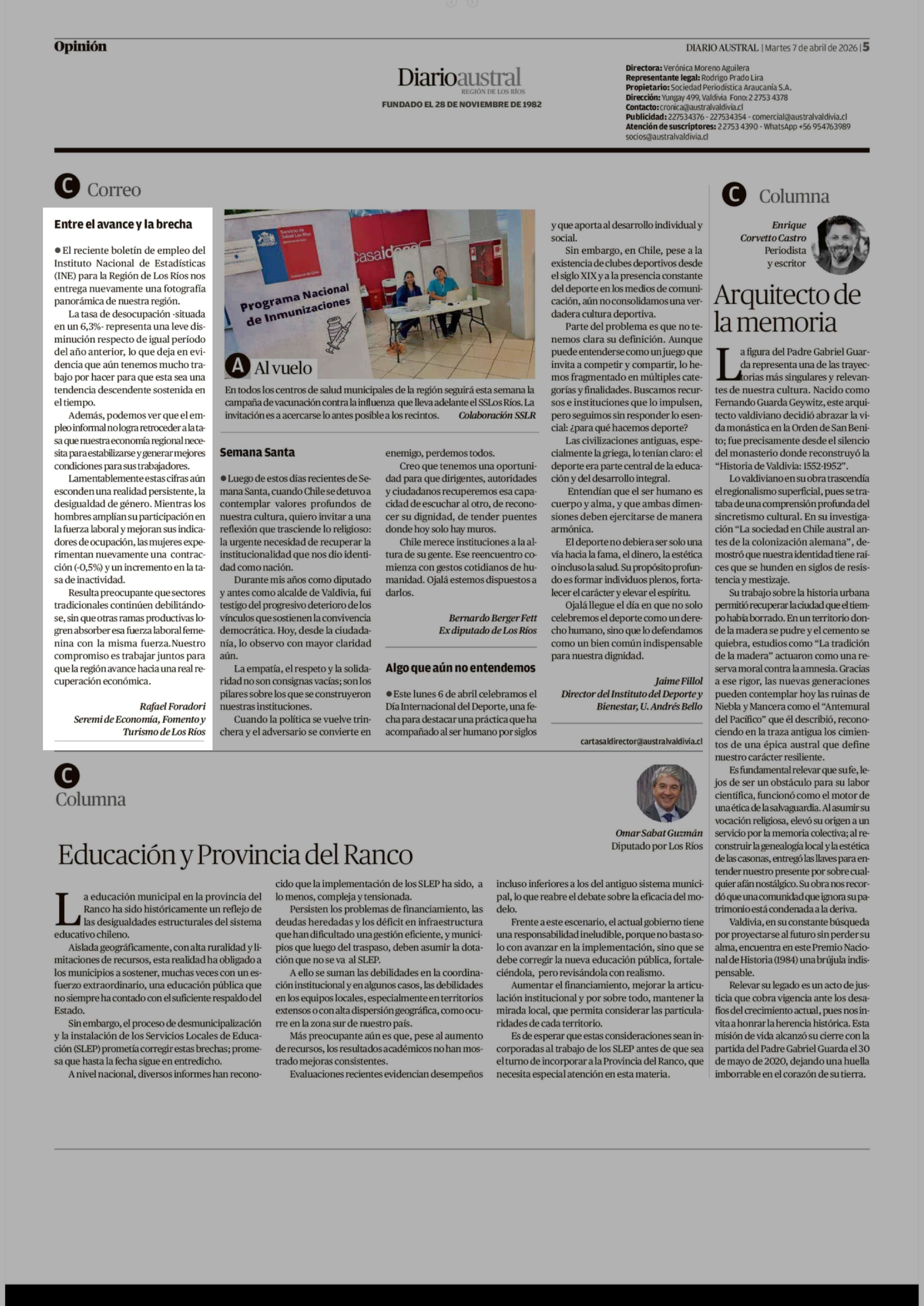 Cartas: Entre el avance y la brecha 07-04-2026 Diario Austral Región de Los Ríos |