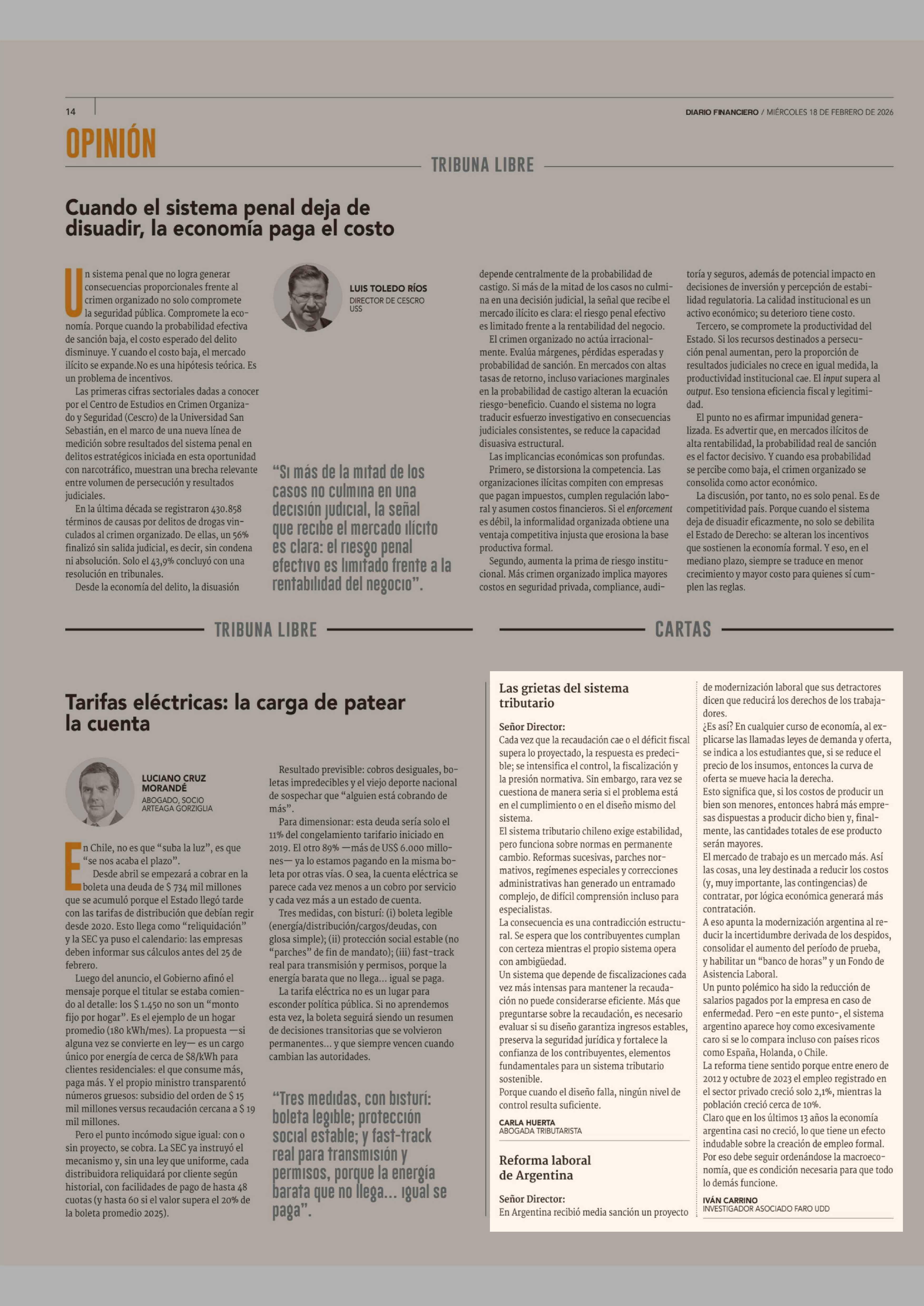 Cartas: Reforma laboral de Argentina 18-02-2026 Diario Financiero |