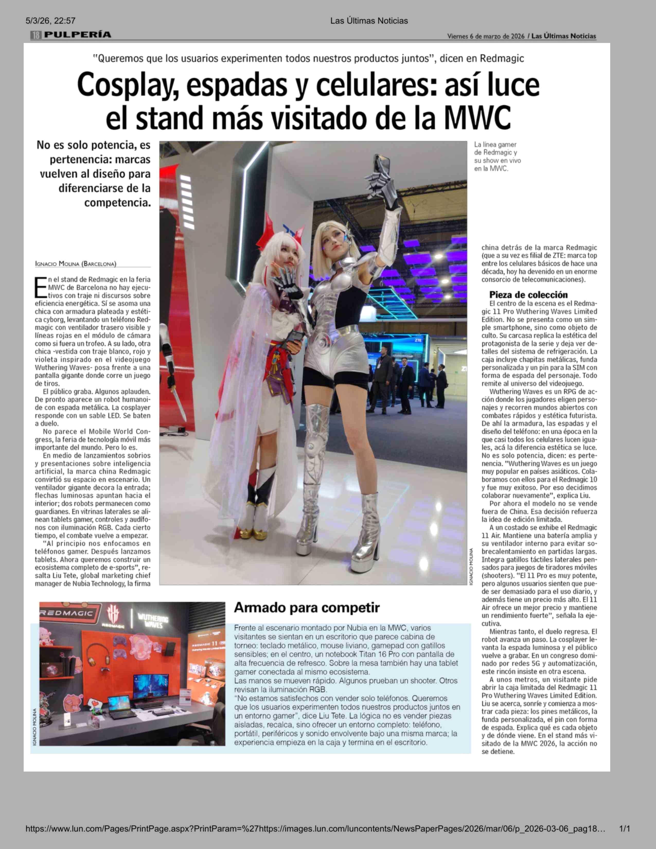 Cosplay, espadas y celulares: así luce el stand más visitado de la MWC 06-03-2026 Las Últimas Noticias |