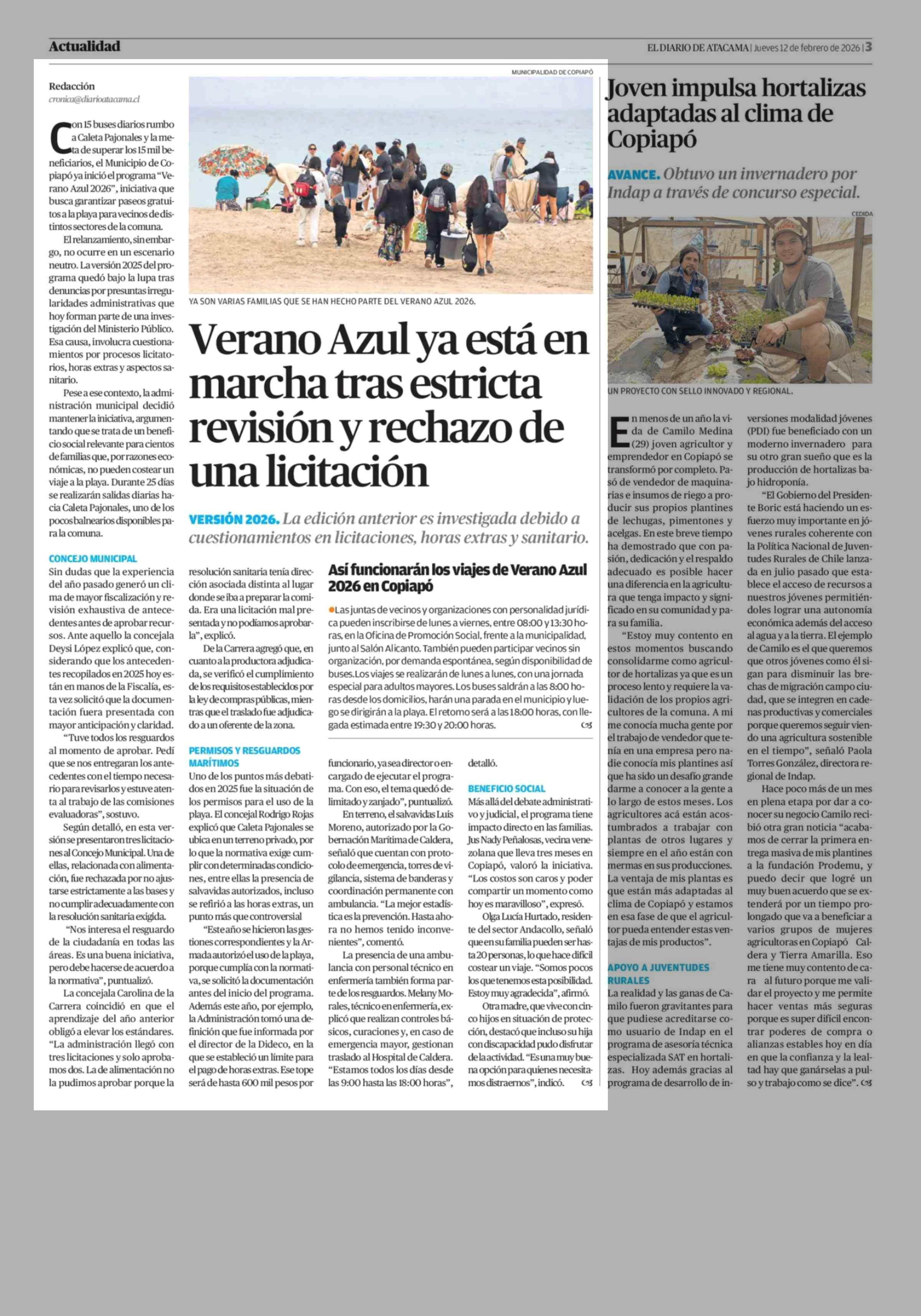 Verano Azul ya está en marcha tras estricta revisión y rechazo de una licitación 12-02-2026 El Diario de Atacama |