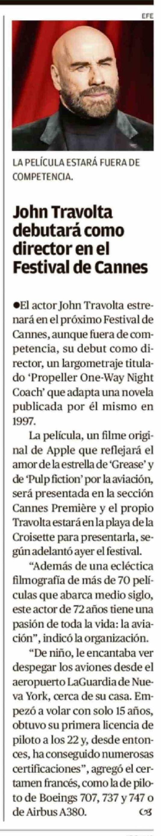 | Título: | John Travolta debutará como director en el Festival de Cannes |