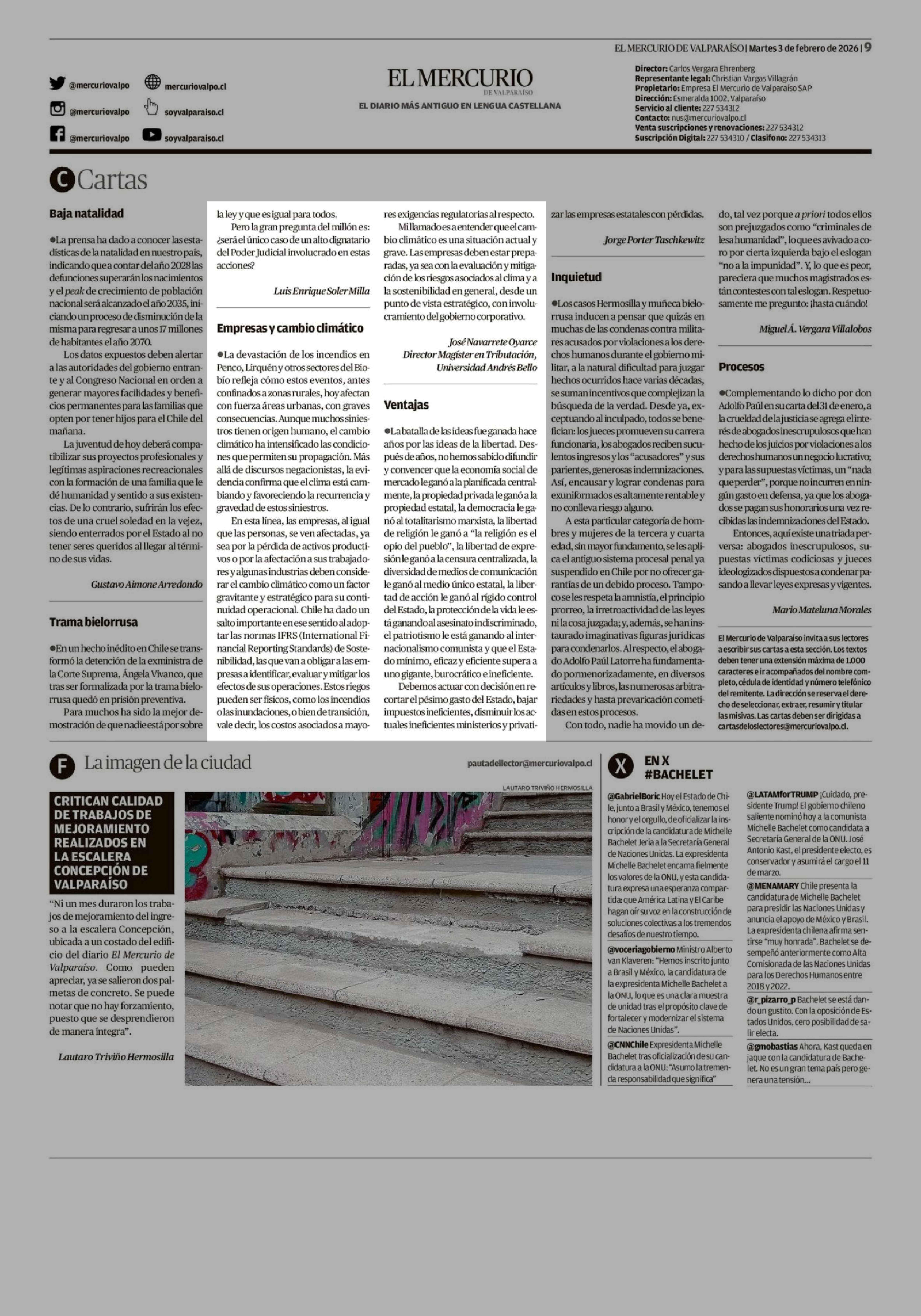 Cartas: Empresas y cambio climático 03-02-2026 El Mercurio de Valparaíso |