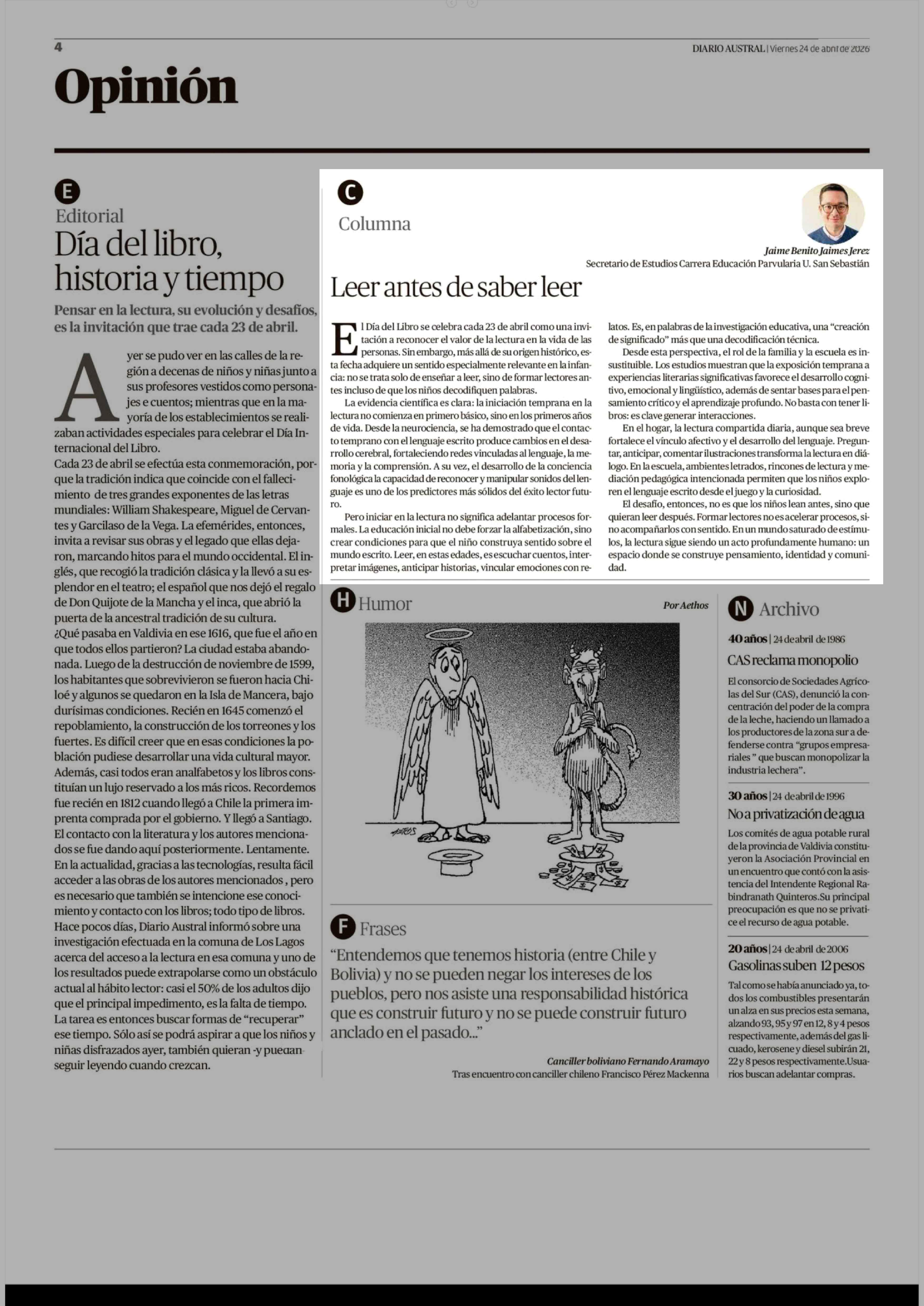 Fecha: 24-04-2026 Sector: Columnas de Opinión Región: Región de Los Ríos