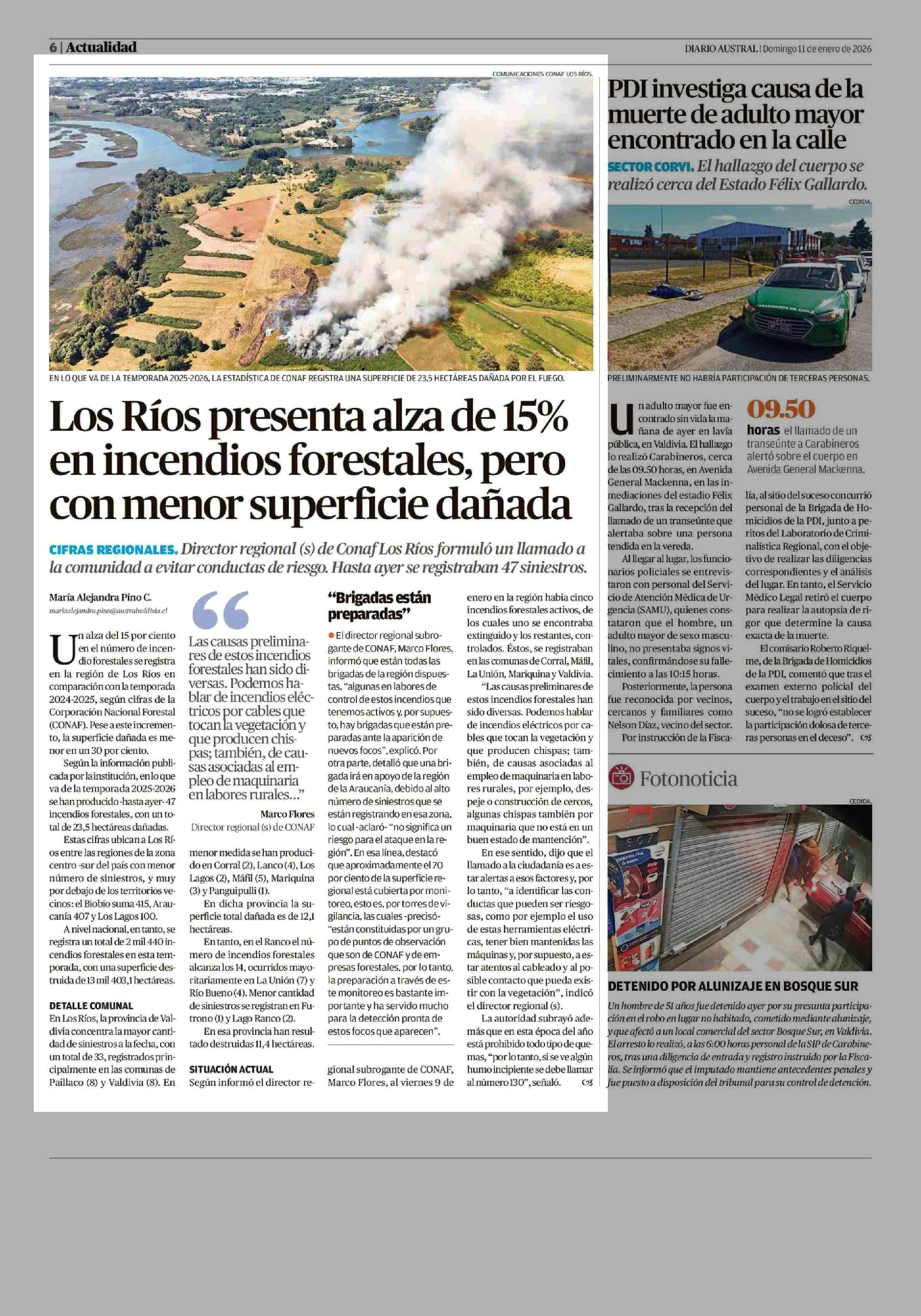 | Fecha: | 11-01-2026 | Sector: | Noticia general | Región: | Región de Los Ríos |