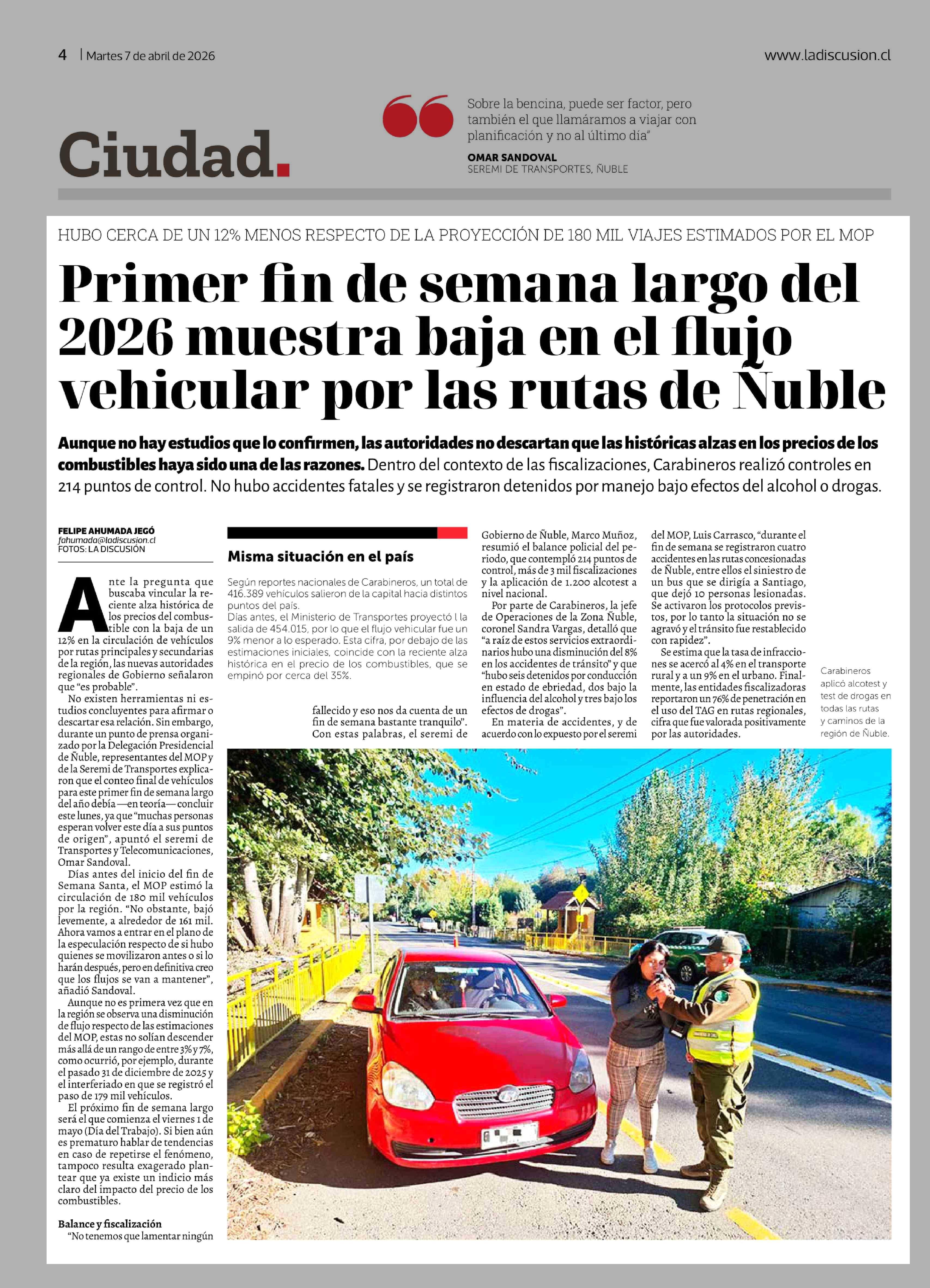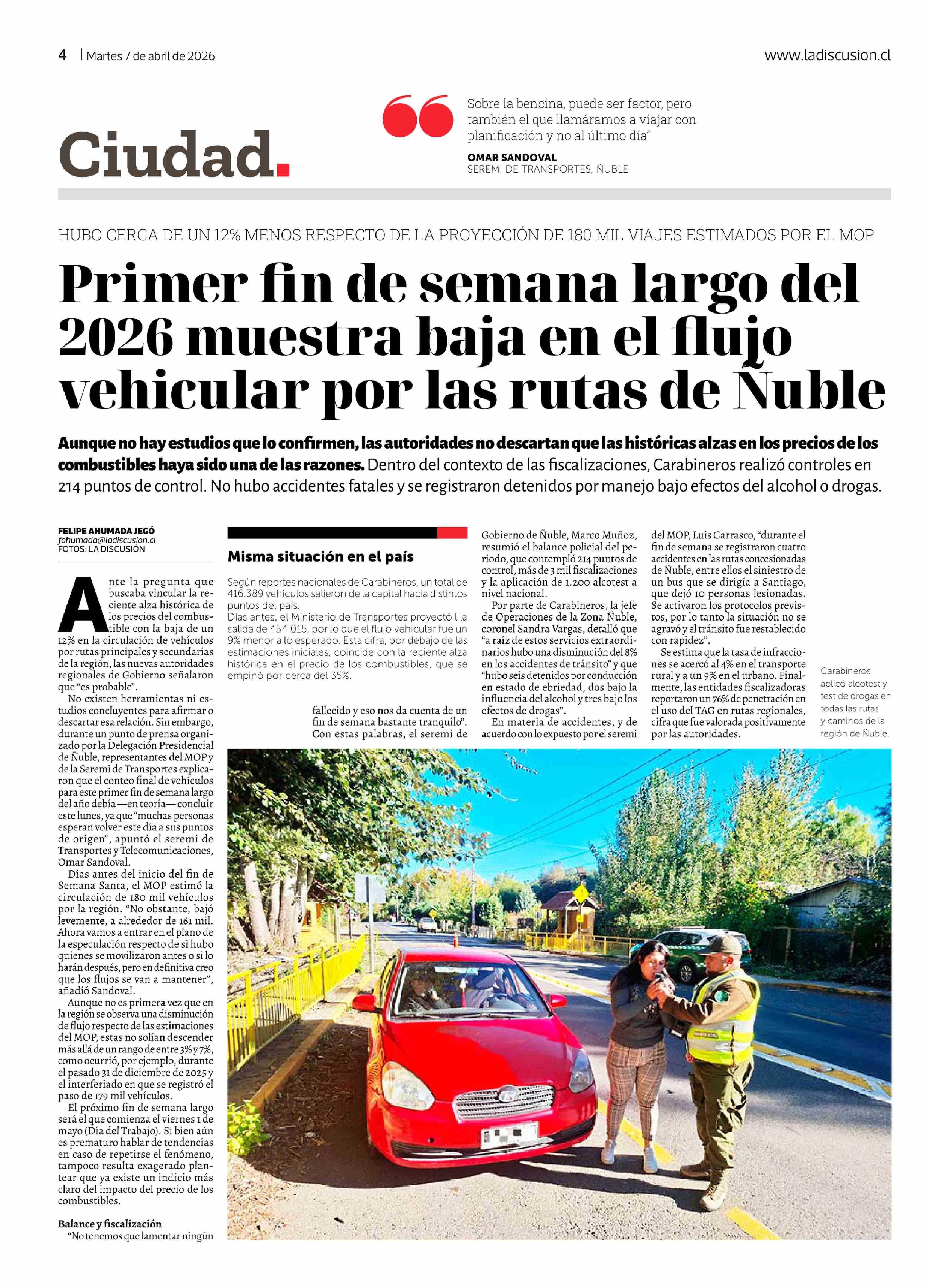 Fecha: 07-04-2026 Sector: Noticia general Región: Región del Ñuble