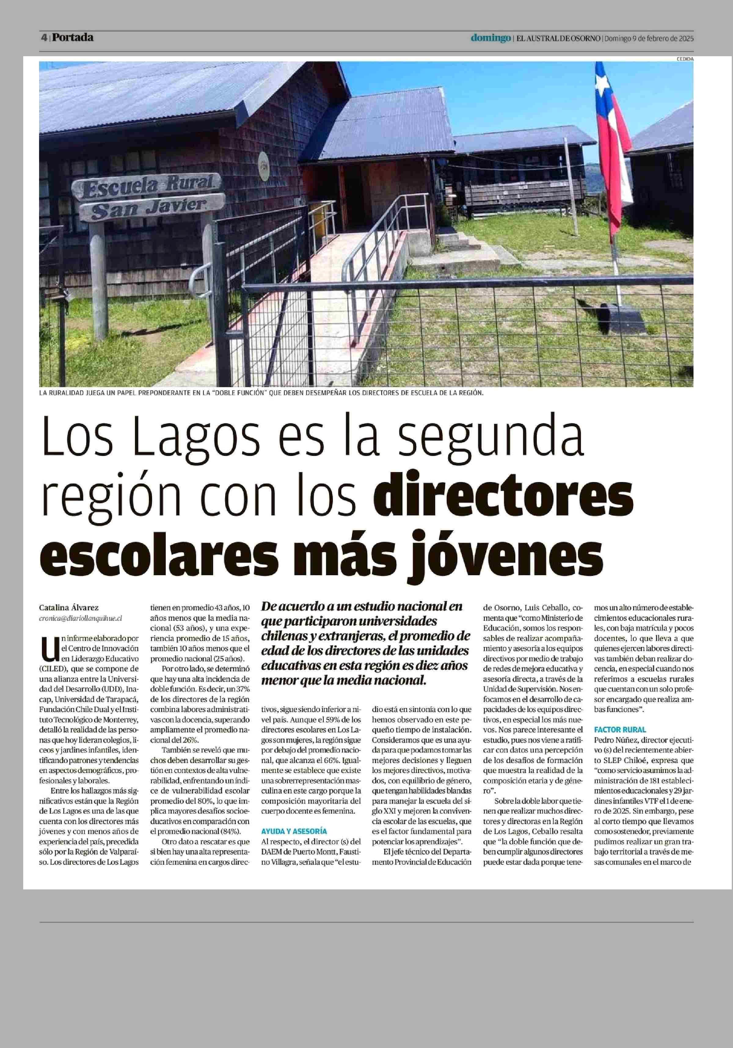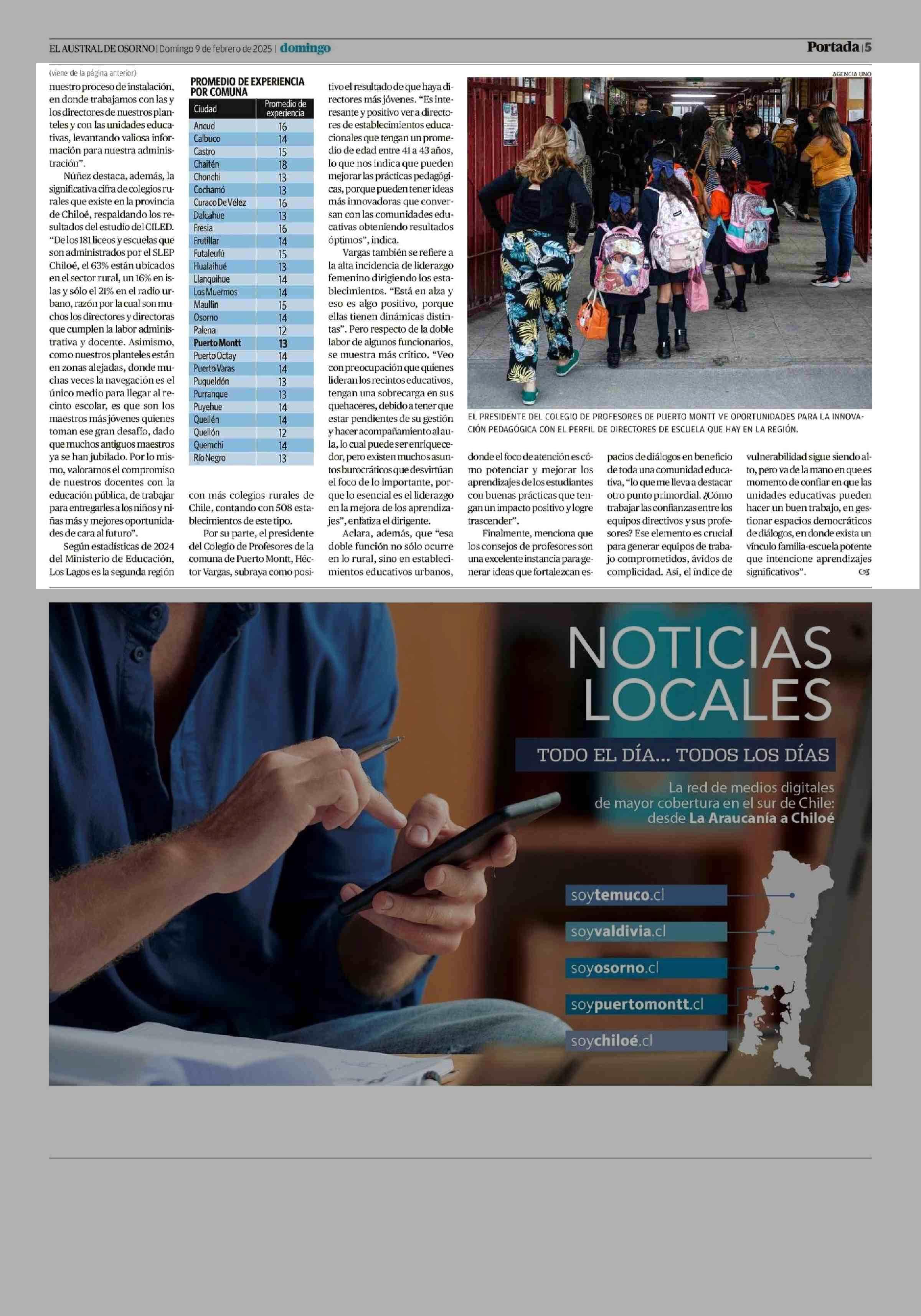 Los Lagos es la segunda región con los directores escolares más jovenes 09-02-2025 El Austral de Osorno |
