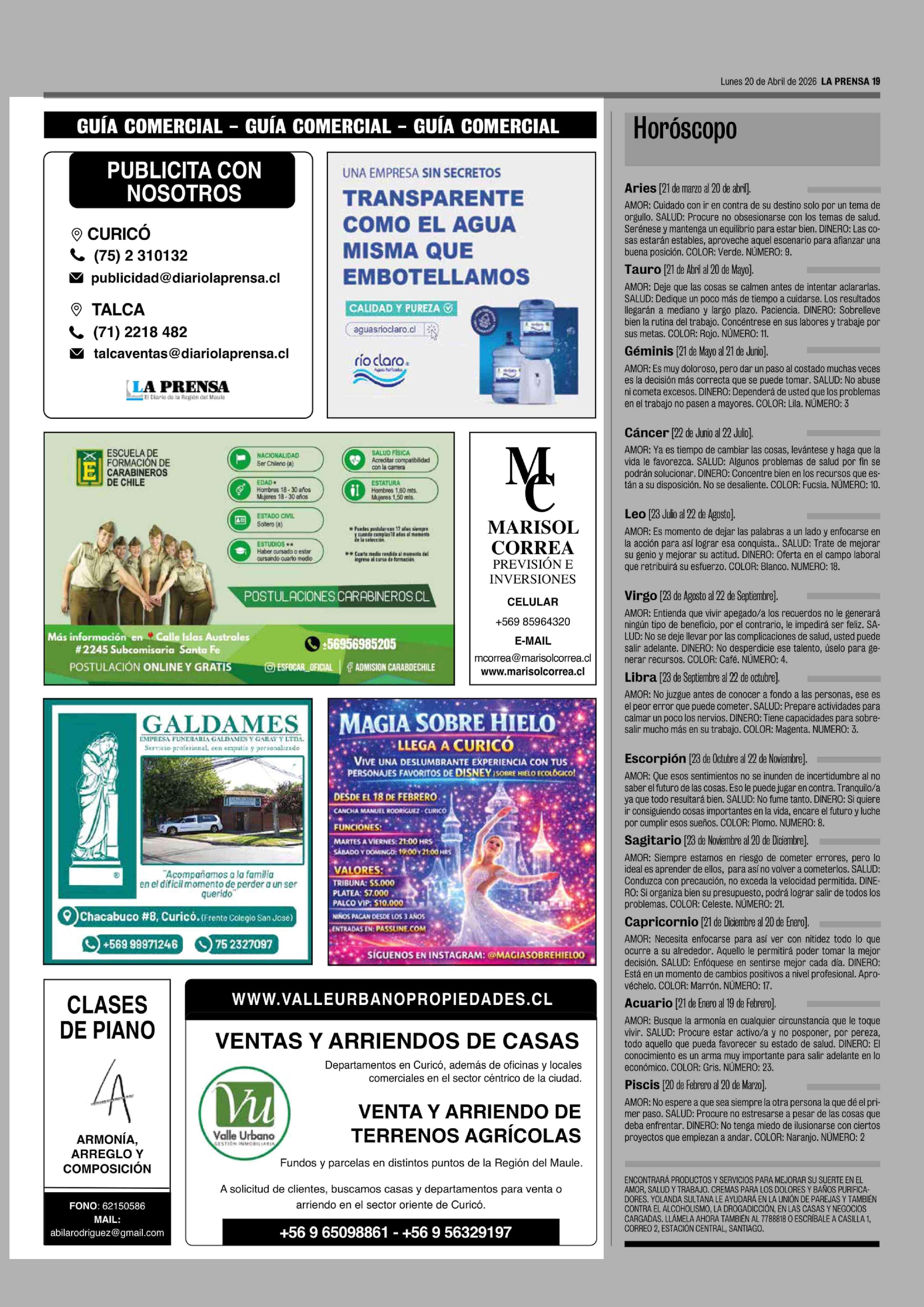 GUÍA COMERCIAL 20-04-2026 La Prensa de Curicó |