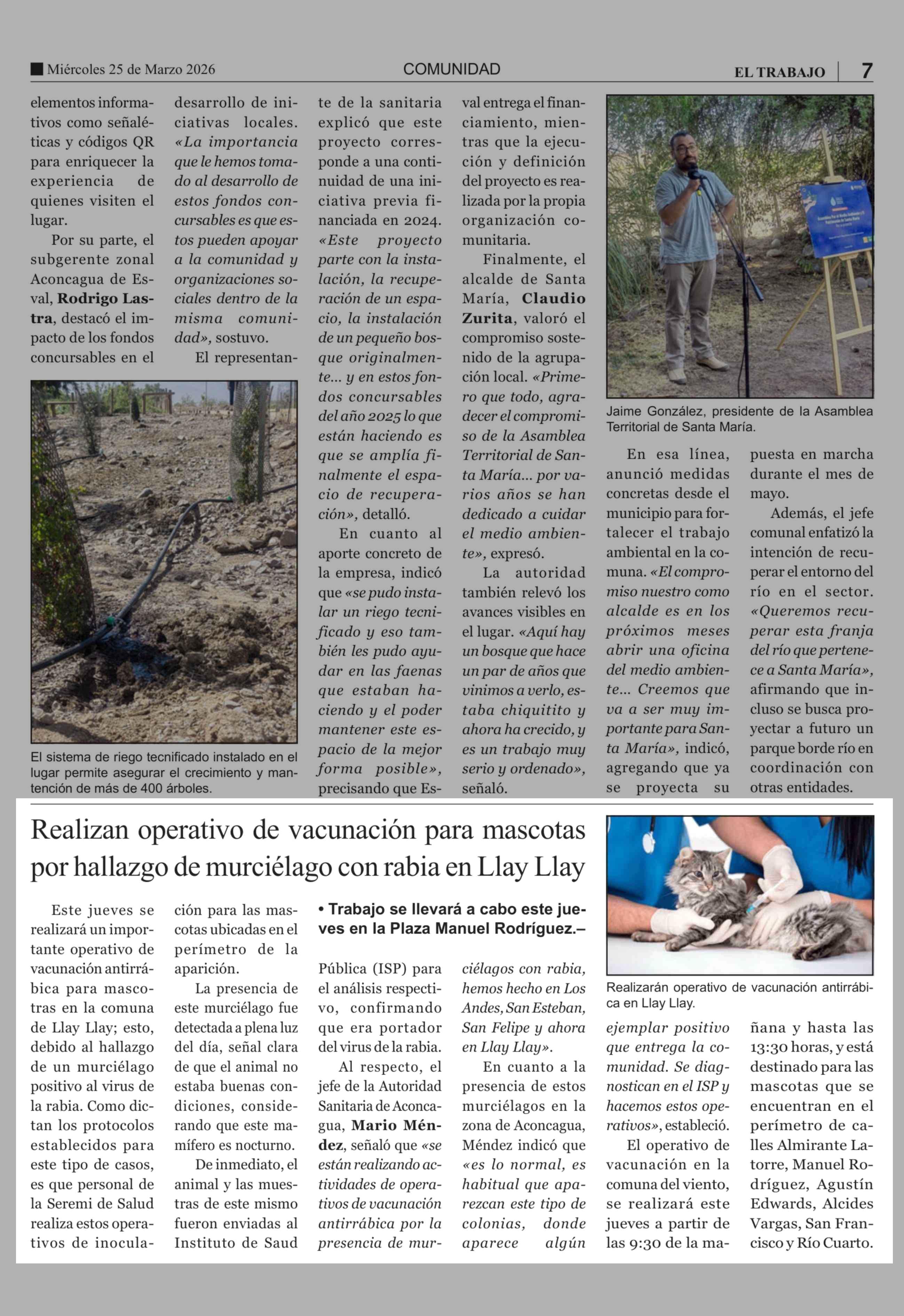 Realizan operativo de vacunación para mascotas por hallazgo de murciélago con rabia en Llay Llay 25-03-2026 El Trabajo |