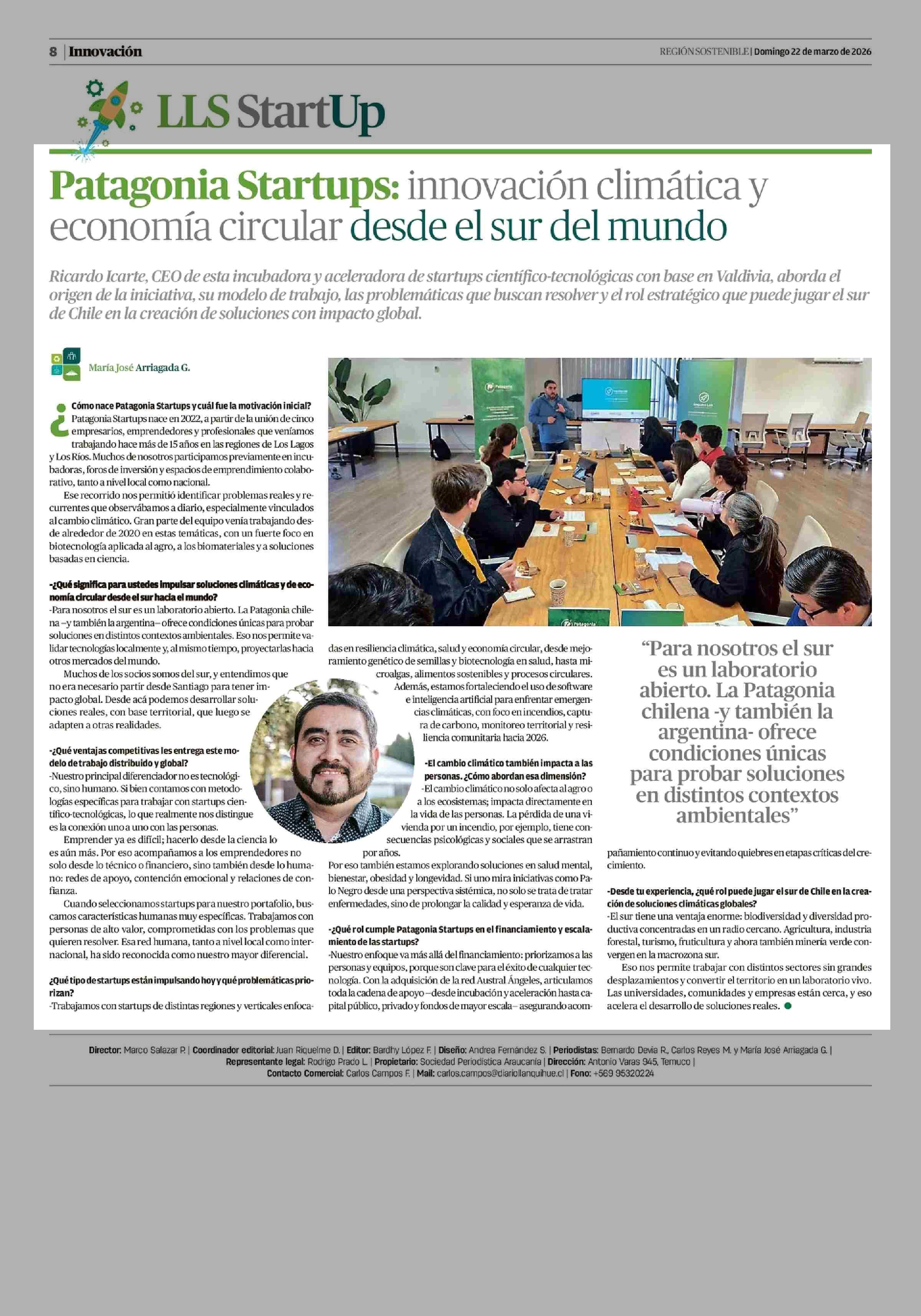 Patagonia Startups: innovación climática y economía circular desde el sur del mundo 22-03-2026 El Austral de Osorno |