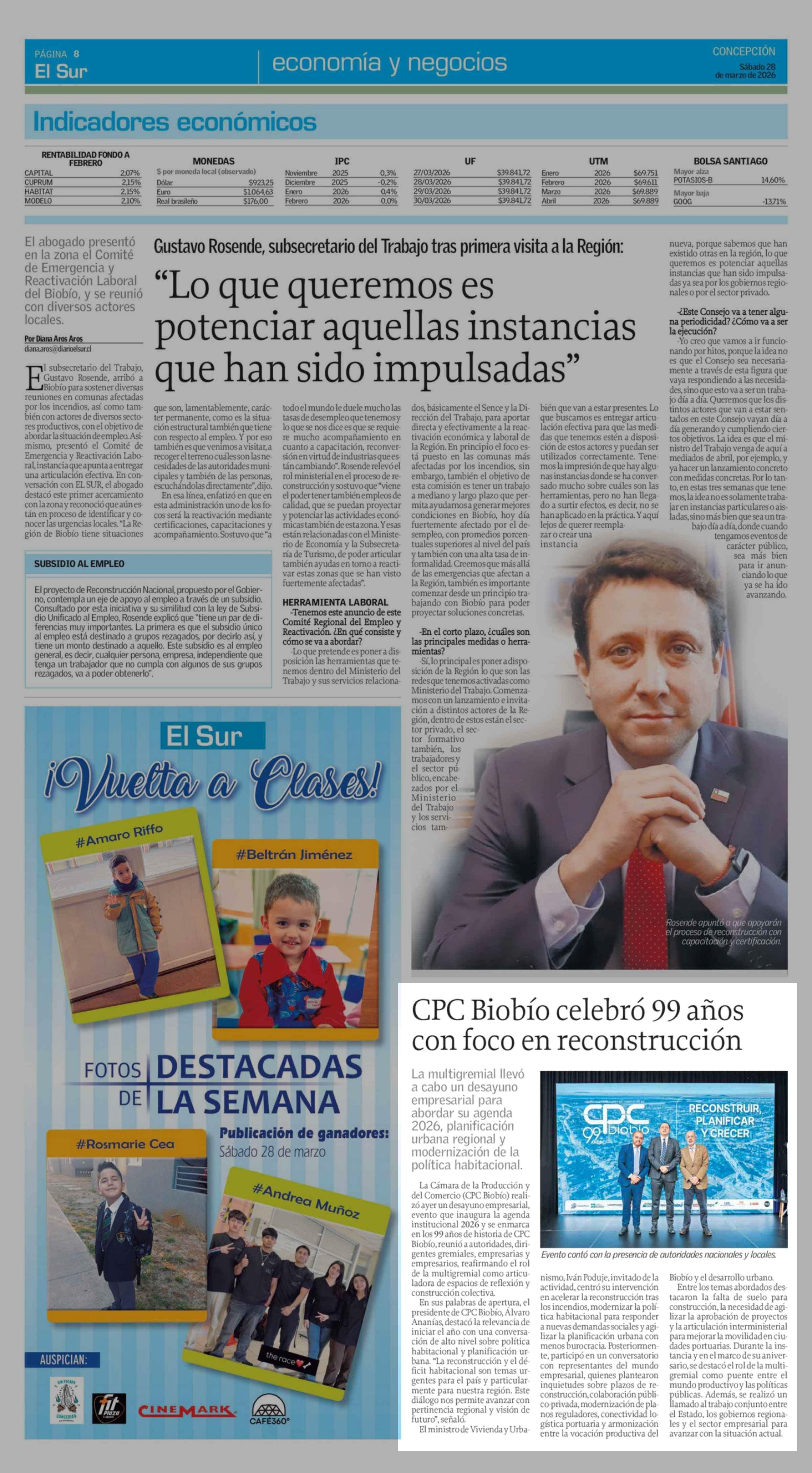 CPC Biobío celebró 99 años con foco en reconstrucción 28-03-2026 El Sur |