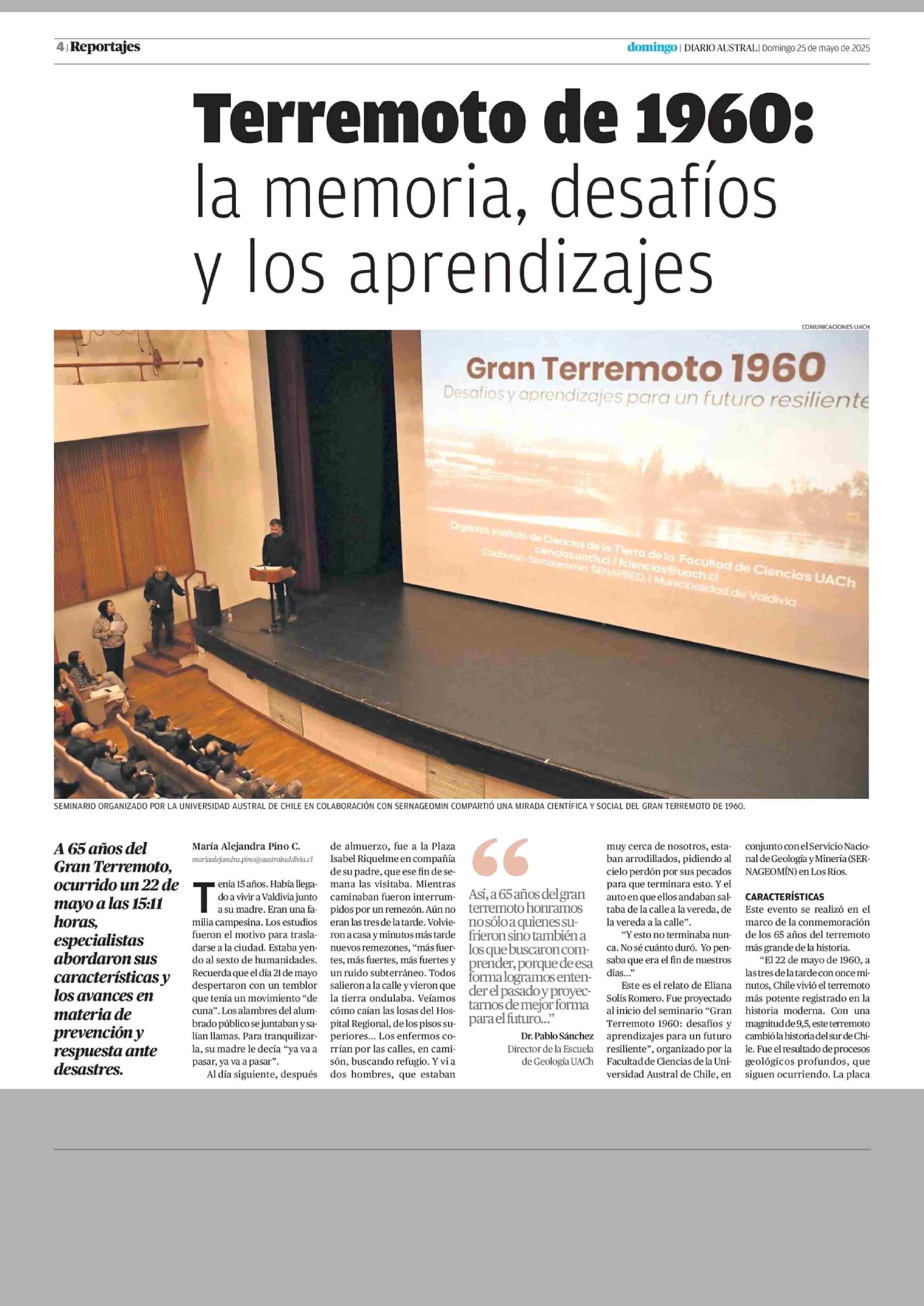 Terremoto de 1960: la memoria, desafios v los aprendizajes 25-05-2025 Diario Austral Región de Los Ríos |