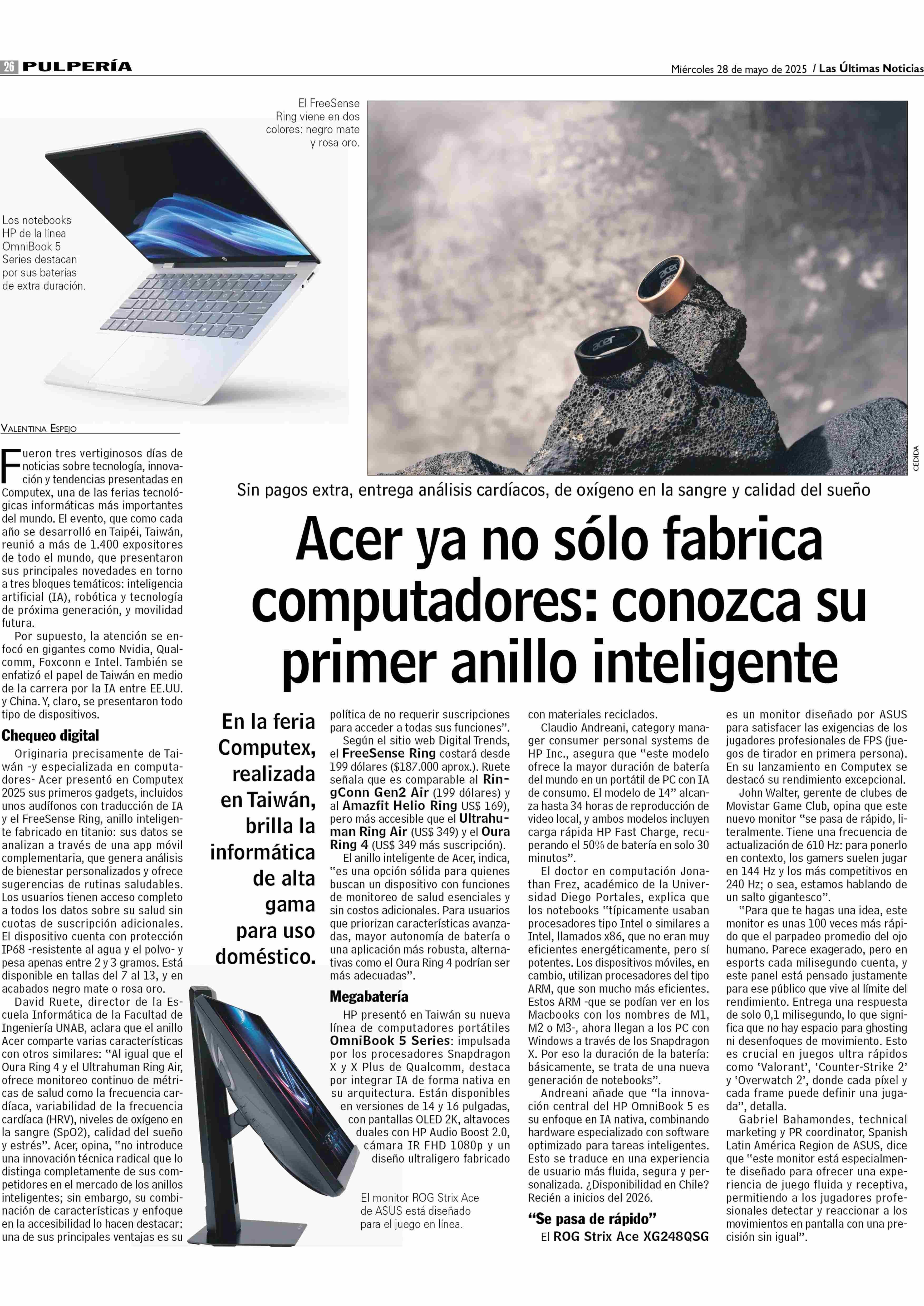 Acer ya no sólo fabrica computadores: conozca su primer anillo inteligente 28-05-2025 Las Últimas Noticias |