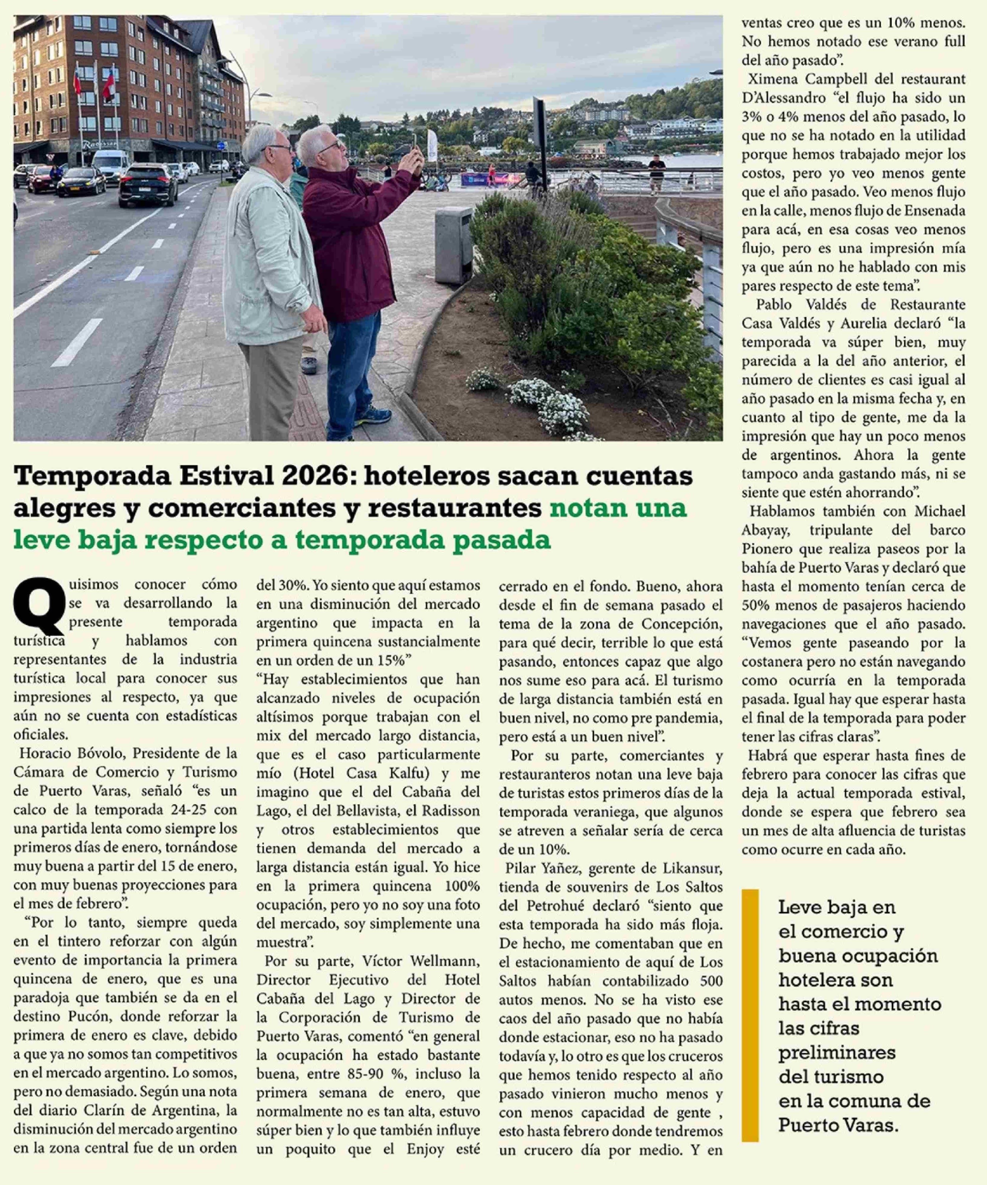 Temporada Estival 2026: hoteleros sacan cuentas alegres y comerciantes y restaurantes notan una leve baja respecto a temporada pasada 22-01-2026 El Heraldo Austral |