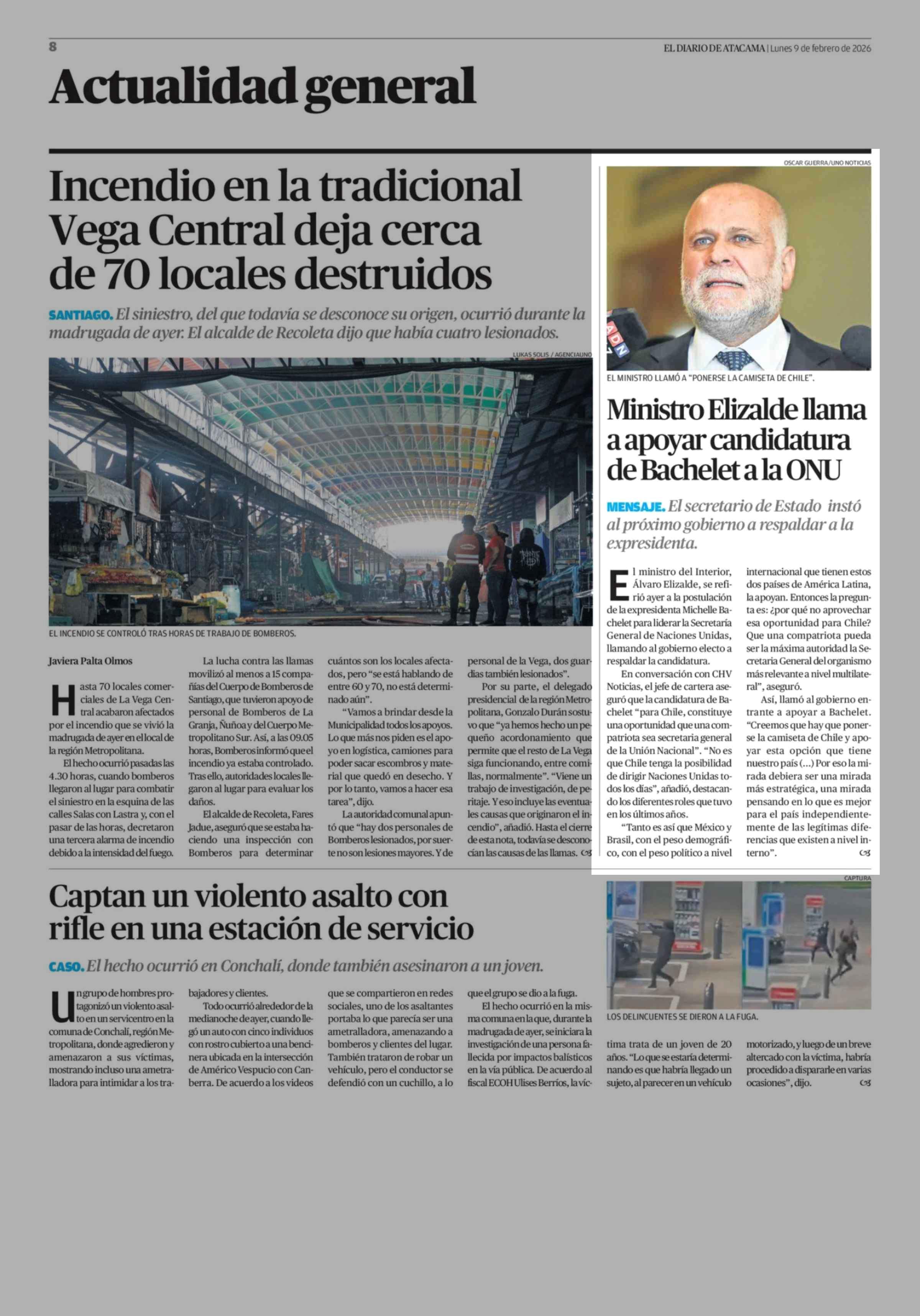 Ministro Elizalde llama a apoyar candidatura de Bachelet a la ONU 09-02-2026 El Diario de Atacama |