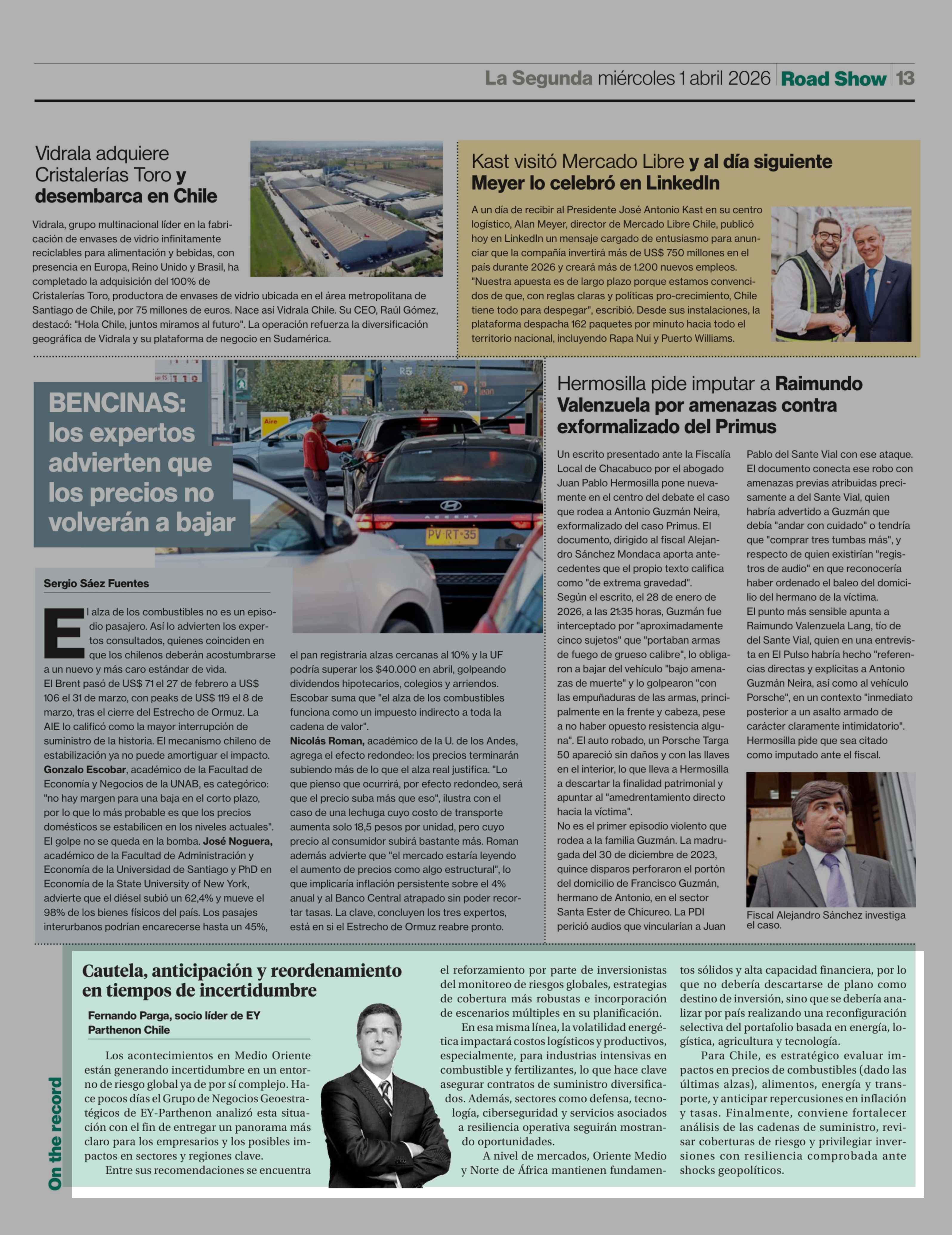 Columnas de Opinión: Cautela, anticipación y reordenamiento en tiempos de incertidumbre 01-04-2026 La Segunda |