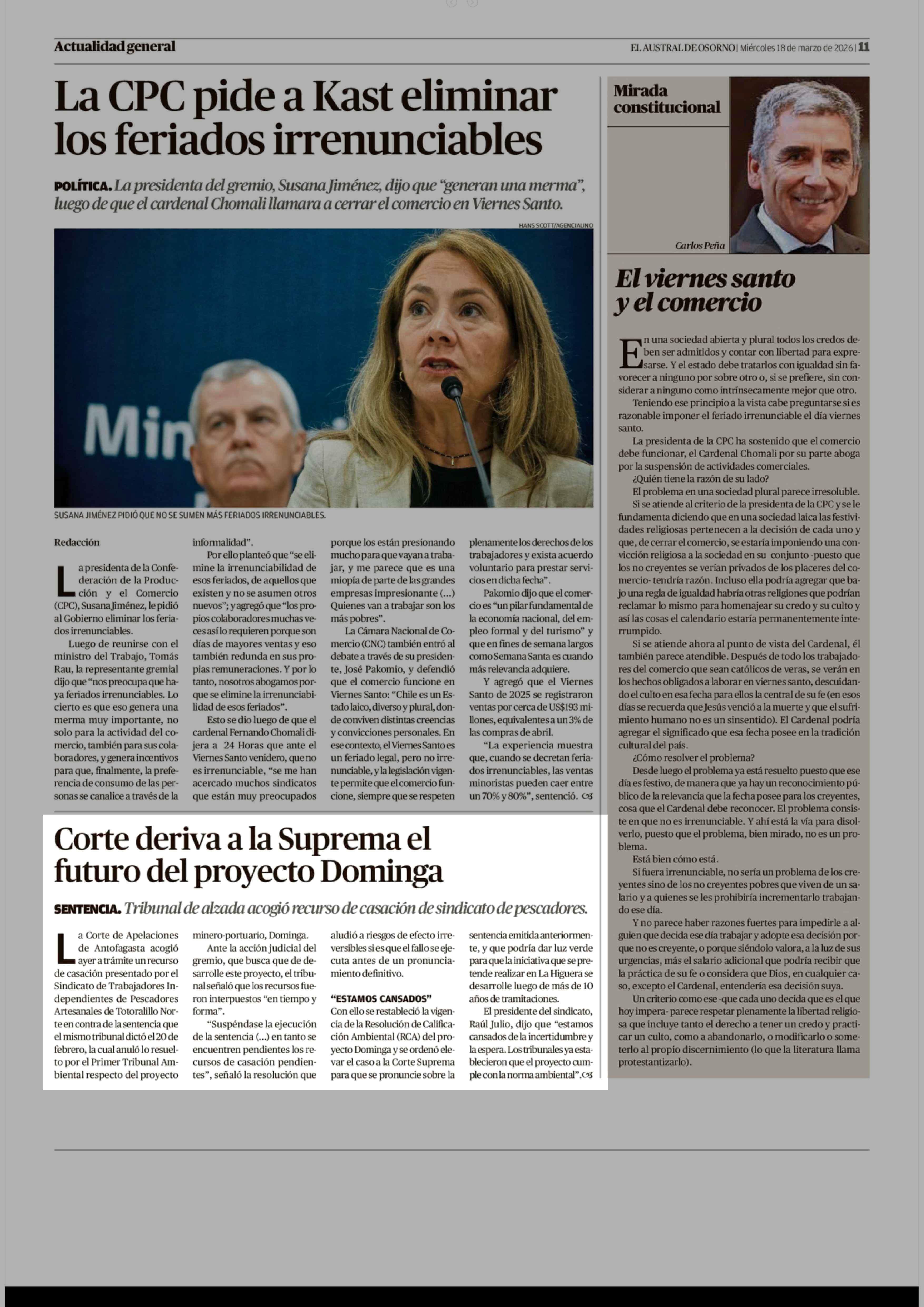 Corte deriva a la Suprema el futuro del proyecto Dominga 18-03-2026 El Austral de Osorno |