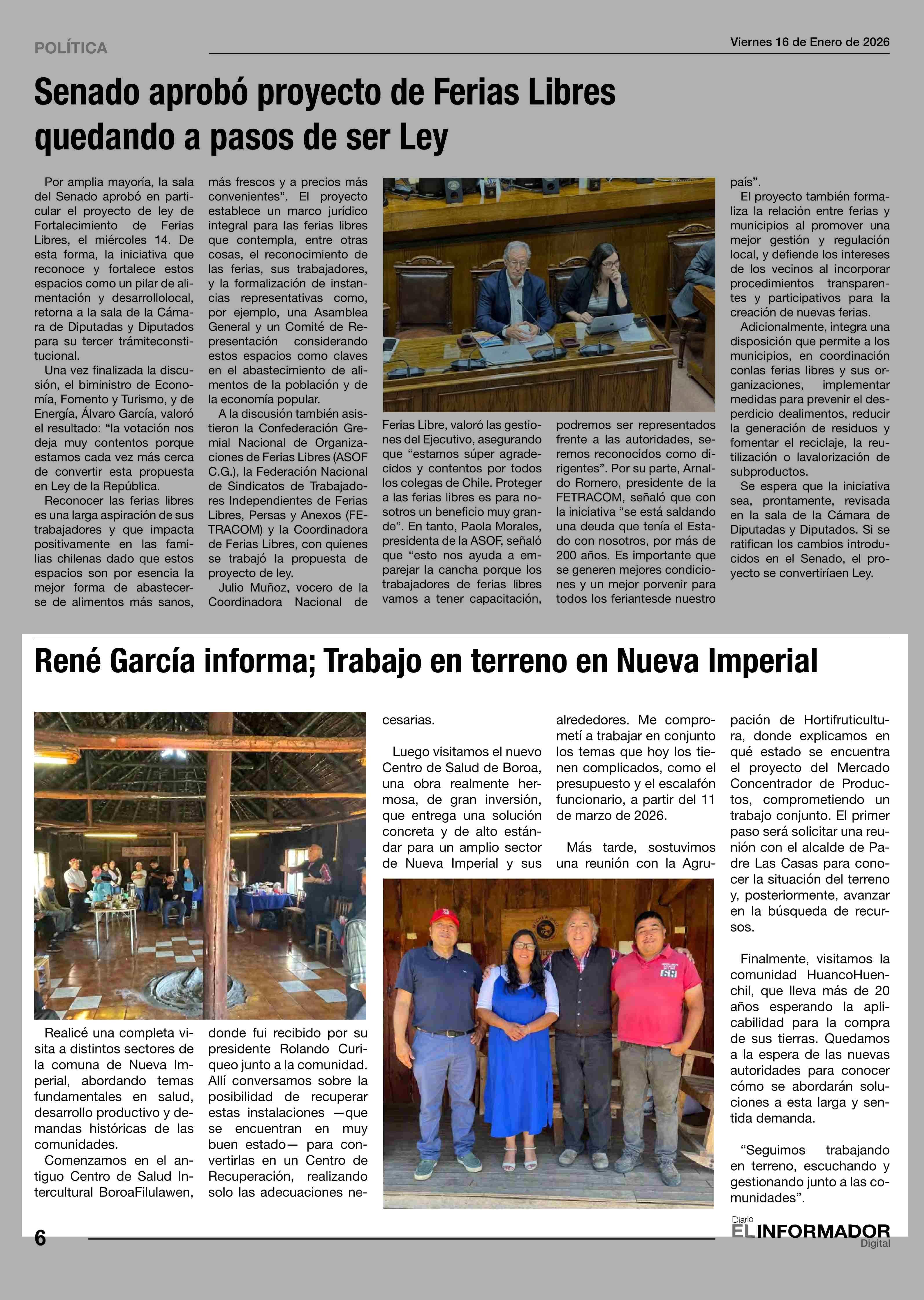 René García informa; Trabajo en terreno en Nueva Imperial 16-01-2026 El Informador |