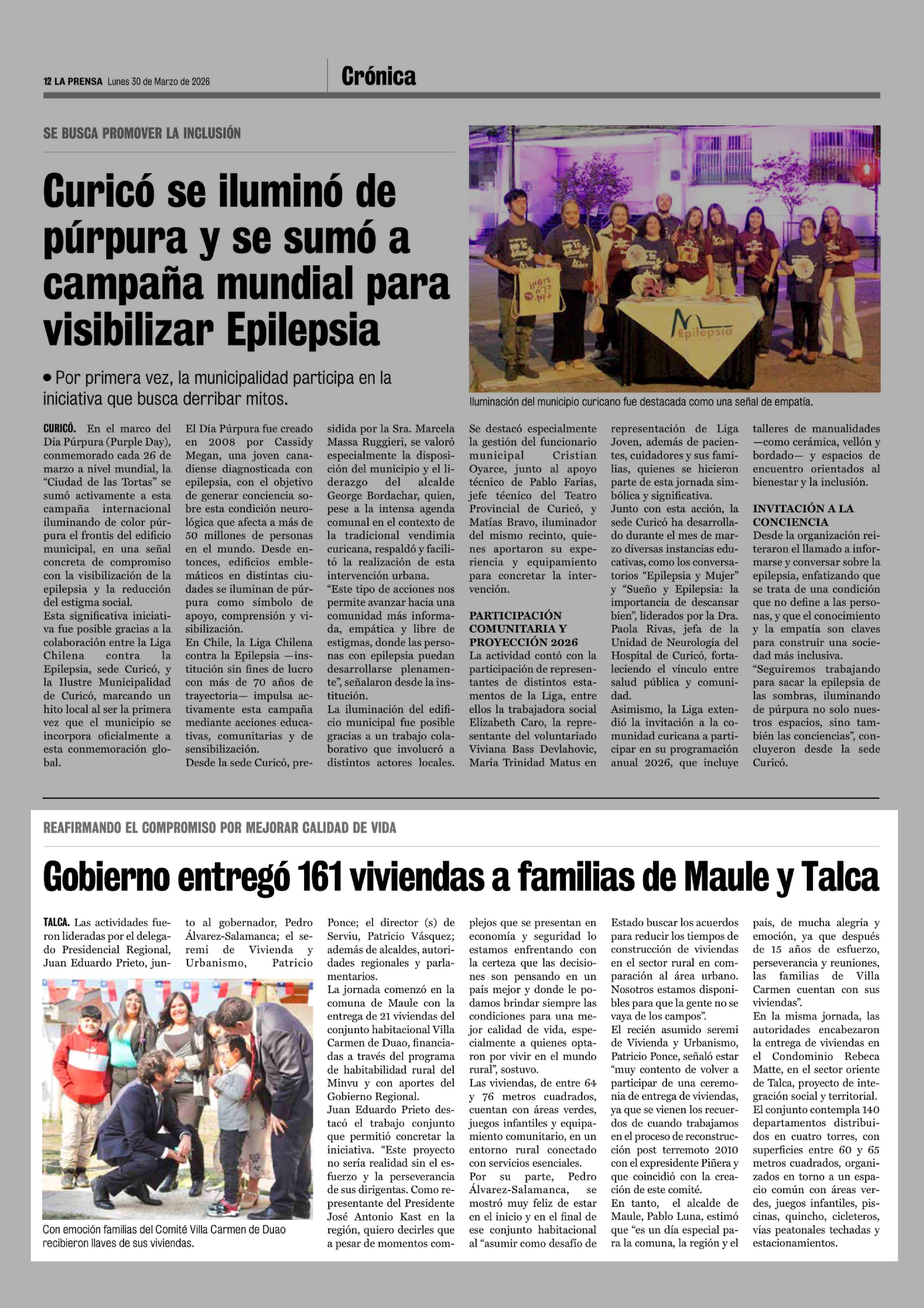 Gobierno entrego 161 viviendas a familias de Maule y Talca 30-03-2026 La Prensa de Curicó |