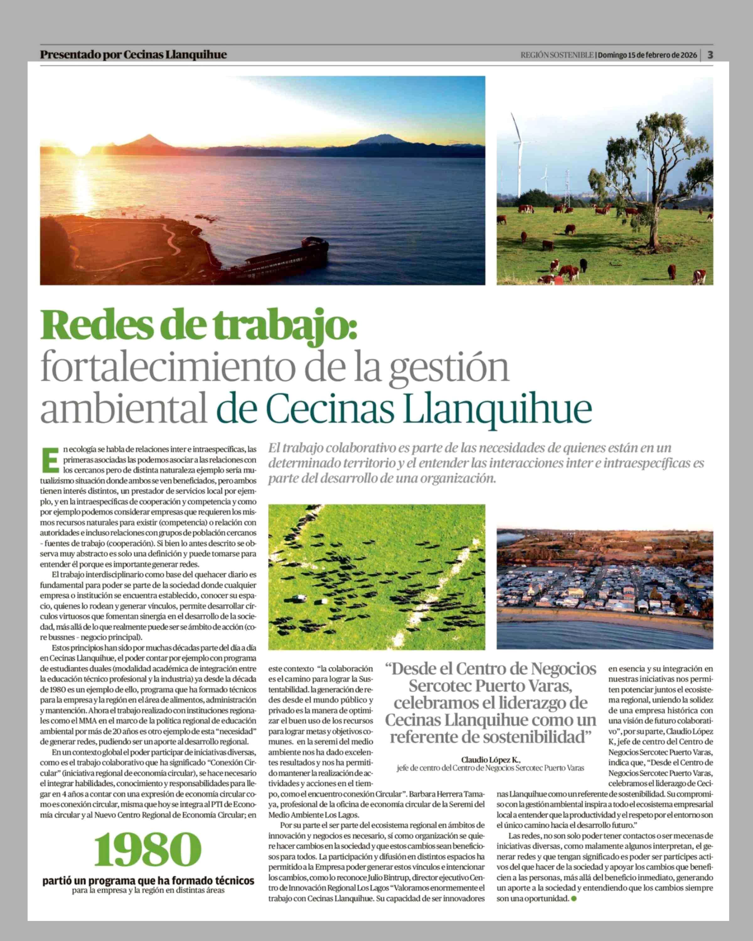 Redes de trabajo: fortalecimiento de la gestión ambiental de Cecinas Llanquihue 15-02-2026 La Estrella de Chiloé |