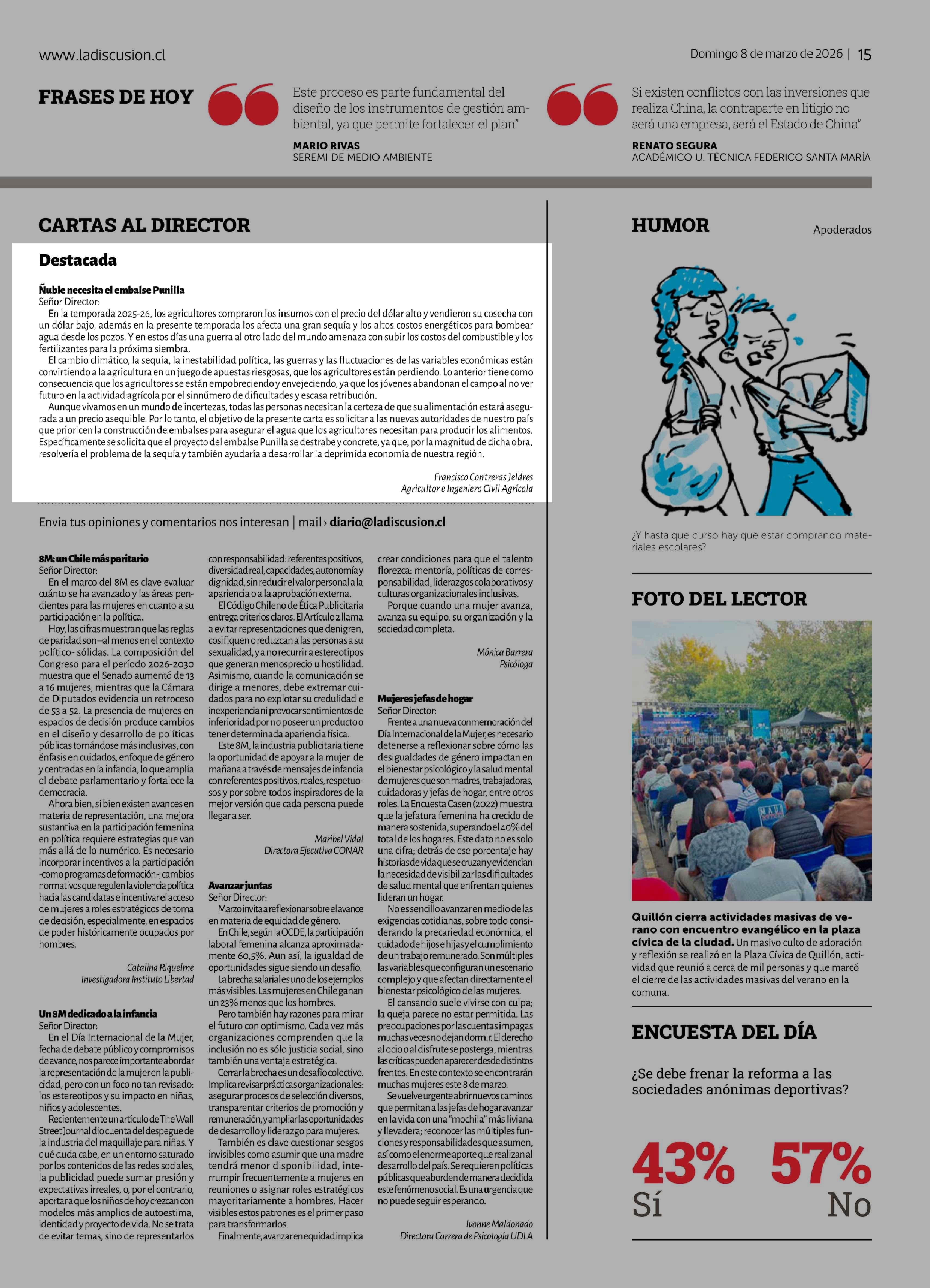 Título: CARTAS: Ñuble necesita el embalse Punilla