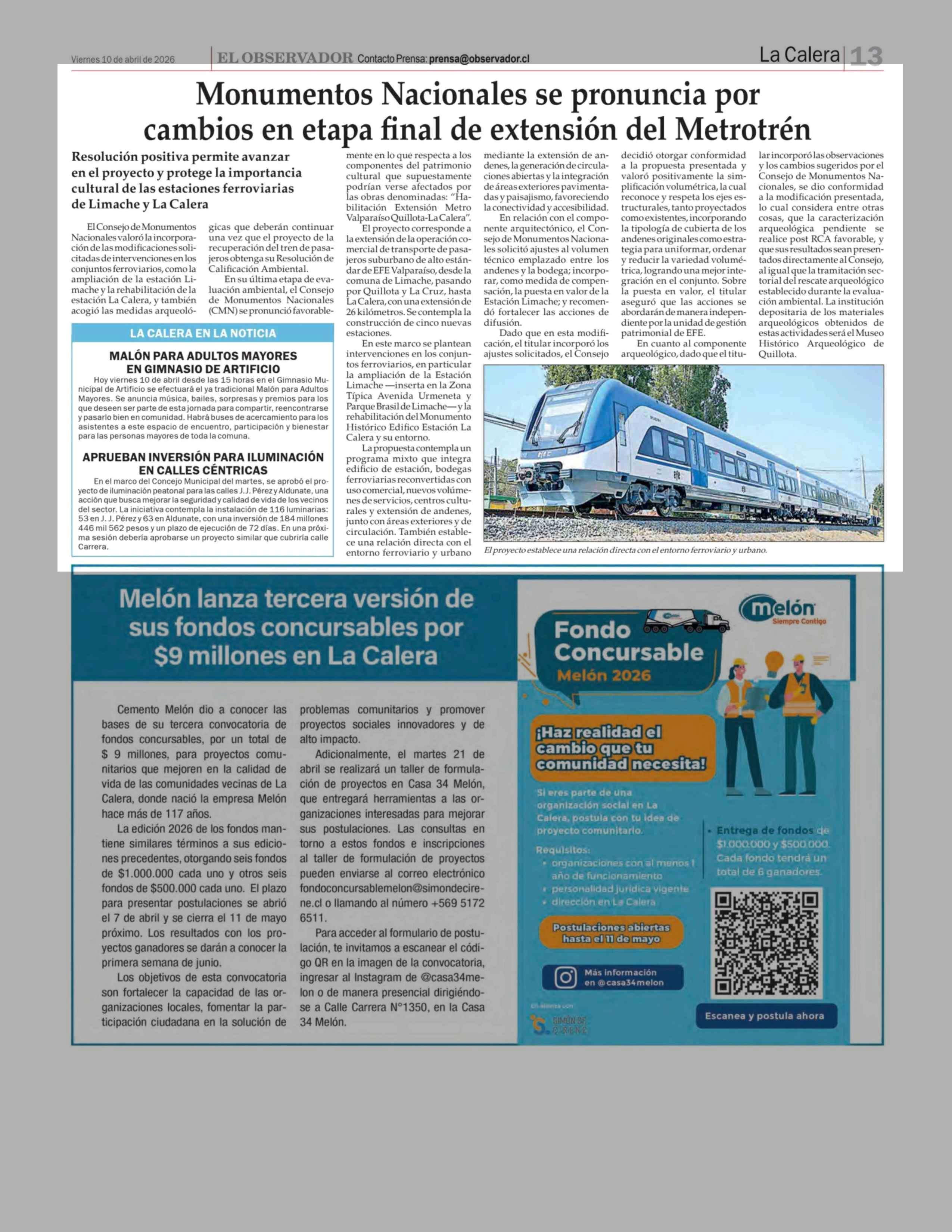 Monumentos Nacionales se pronuncia por cambios en etapa final de extensión del Metrotrén 10-04-2026 El Observador |