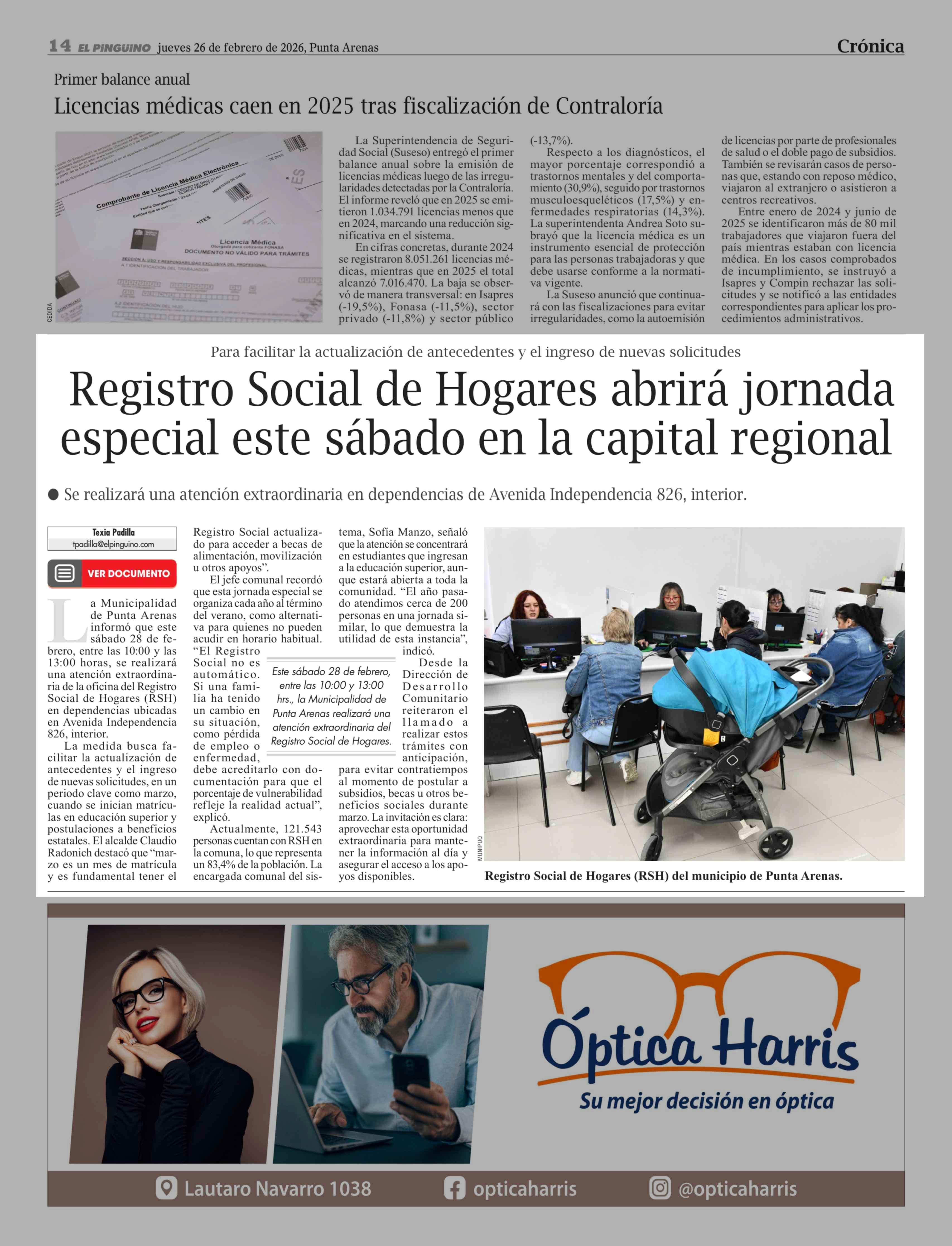 Fecha: 26-02-2026 Sector: Noticia general Región: Región de Magallanes y de la Antártica Chilena