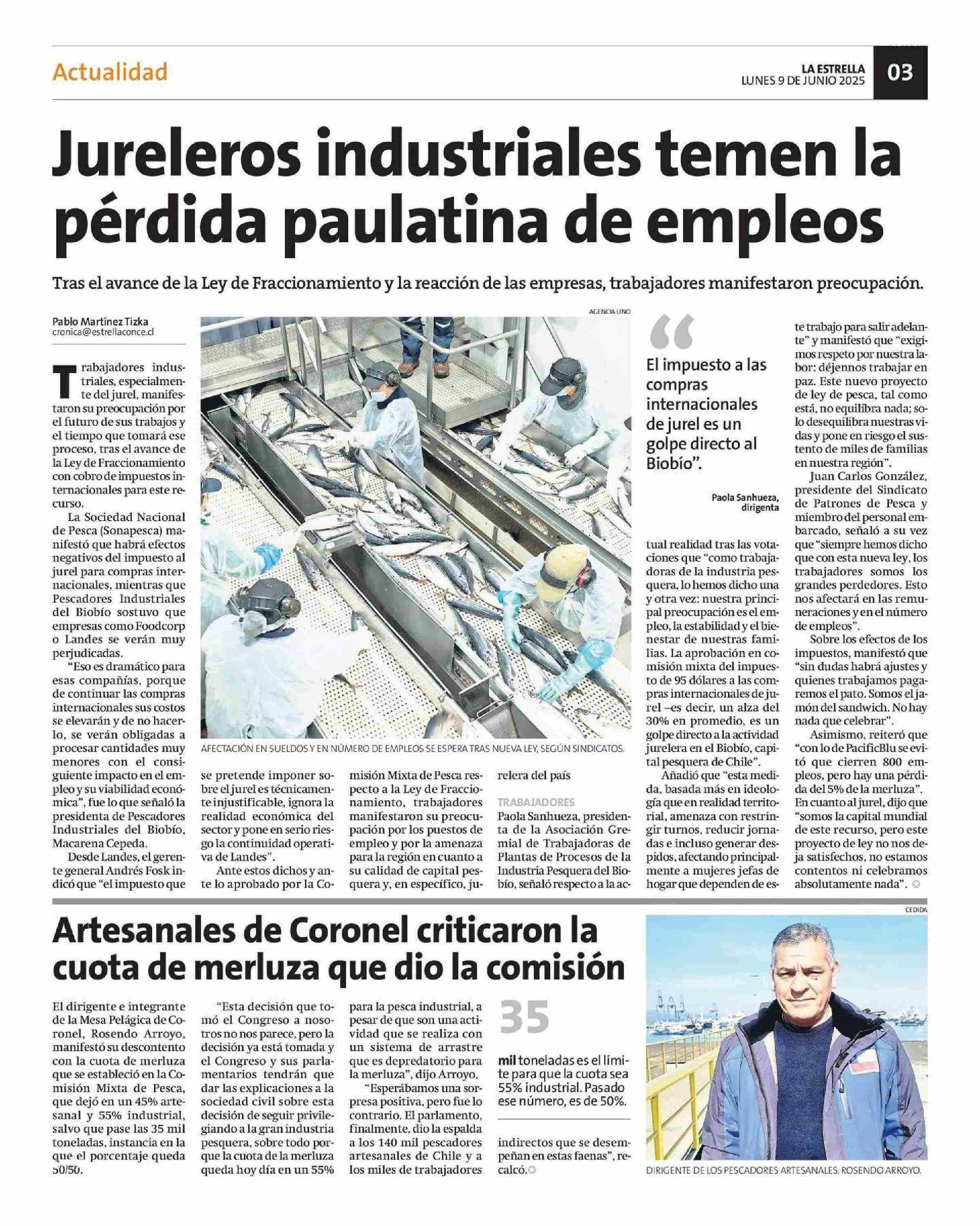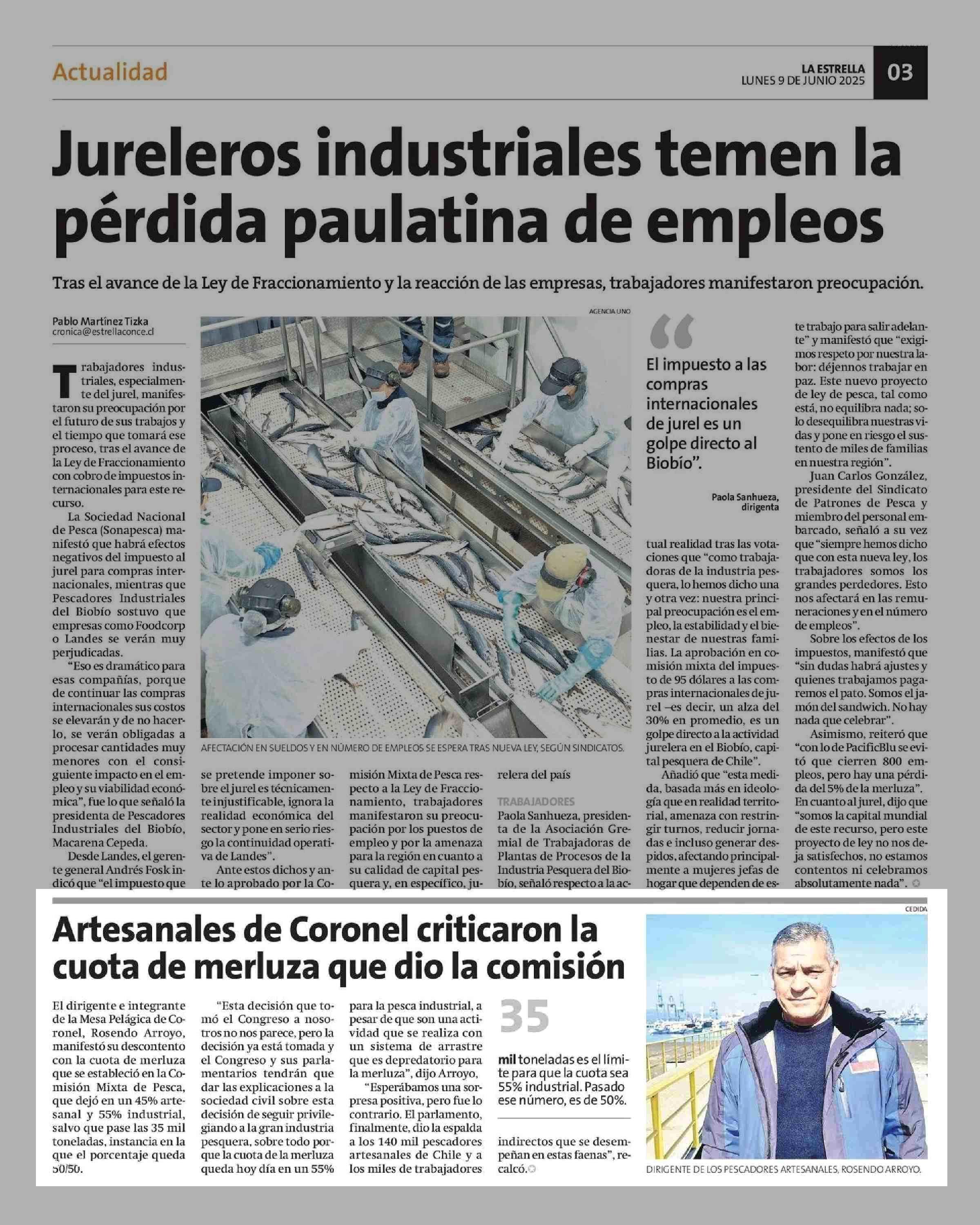 Artesanales de Coronel criticaron la cuota de merluza que dio la comisión 09-06-2025 La Estrella de Concepción |