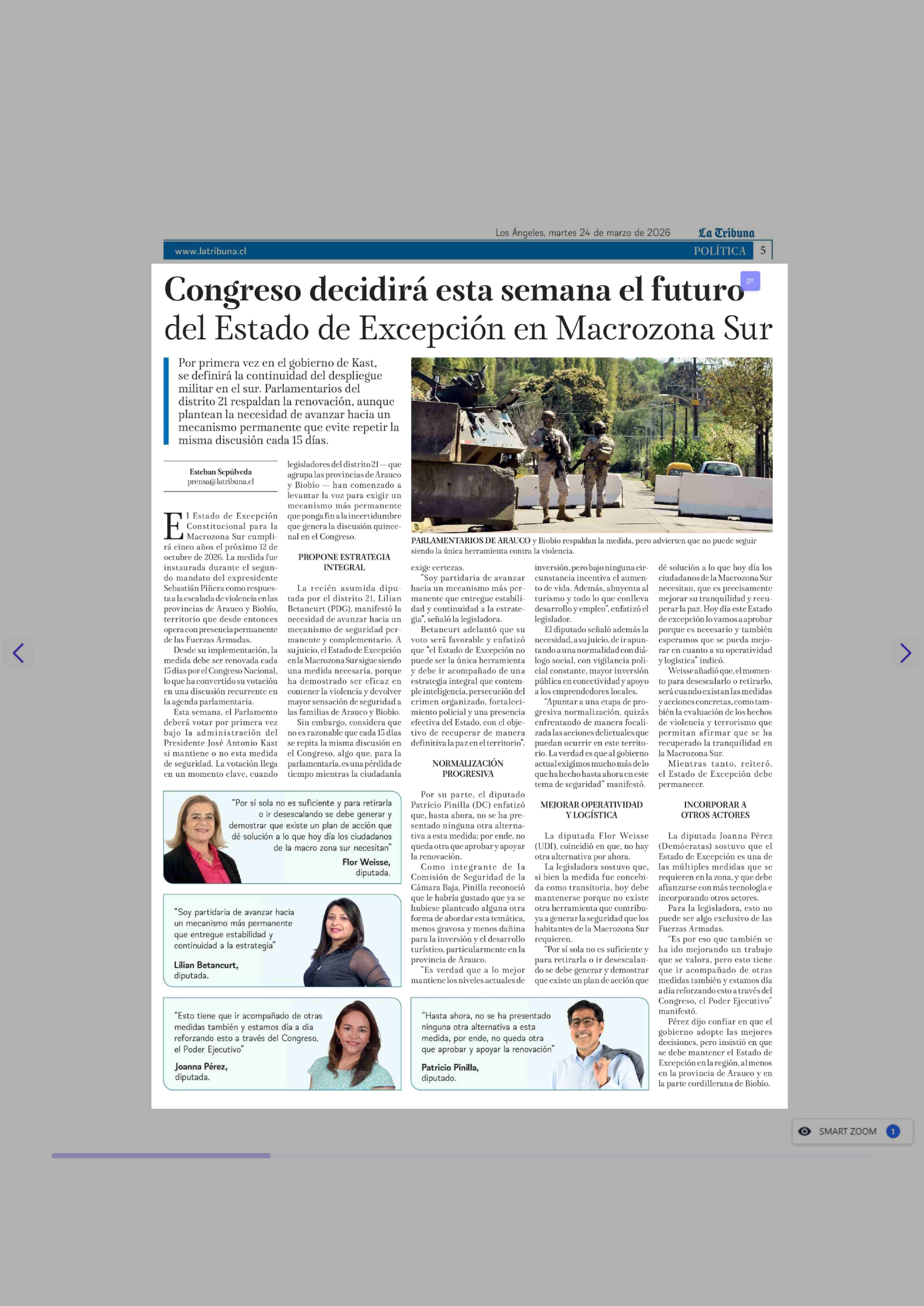 Título: Congreso decidirá esta semana el futuro del Estado de Excepción en Macrozona Sur