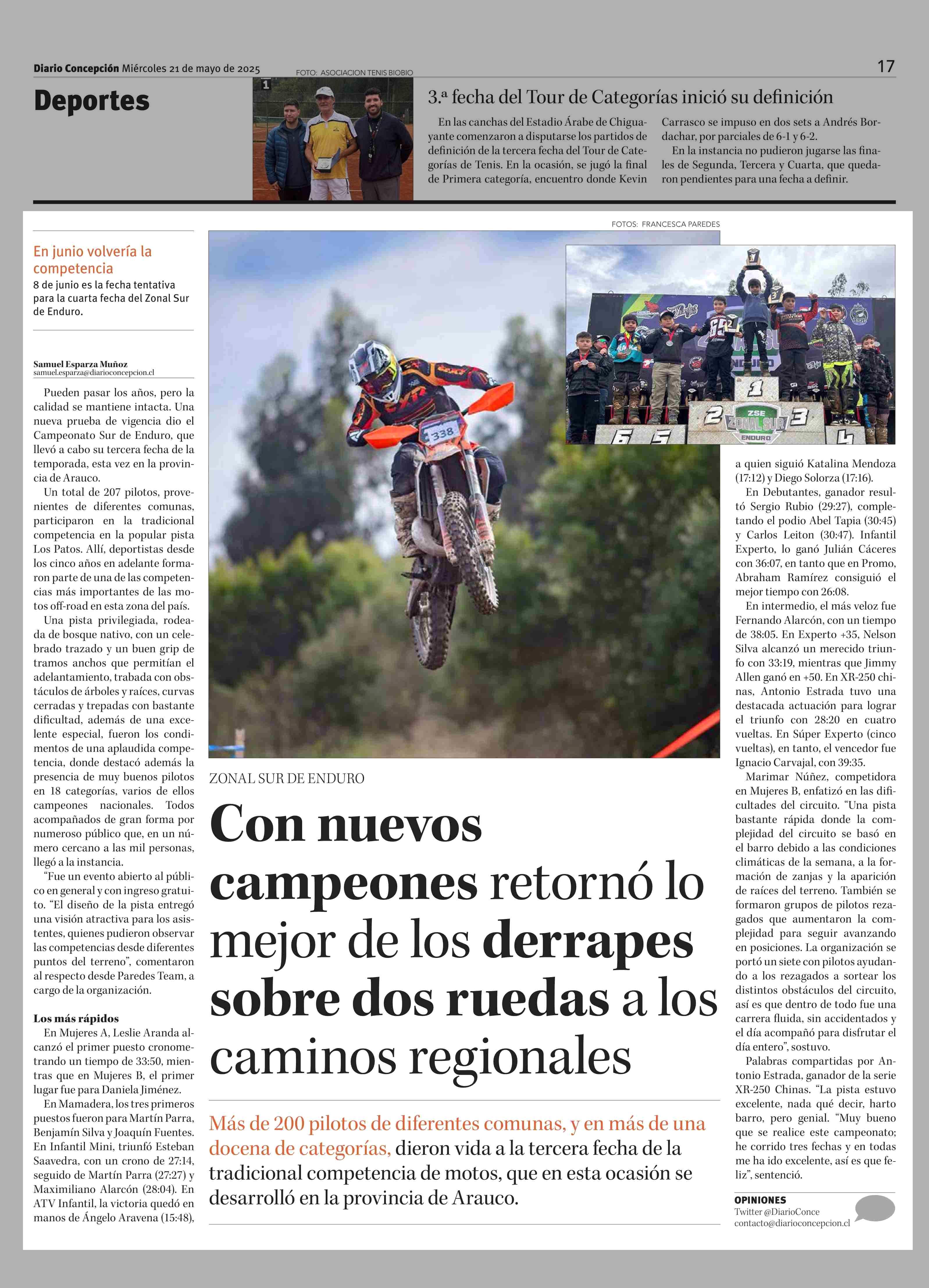 Con nuevos campeones retornó lo mejor de los derrapes sobre dos ruedas a los caminos regionales 21-05-2025 Diario Concepción |