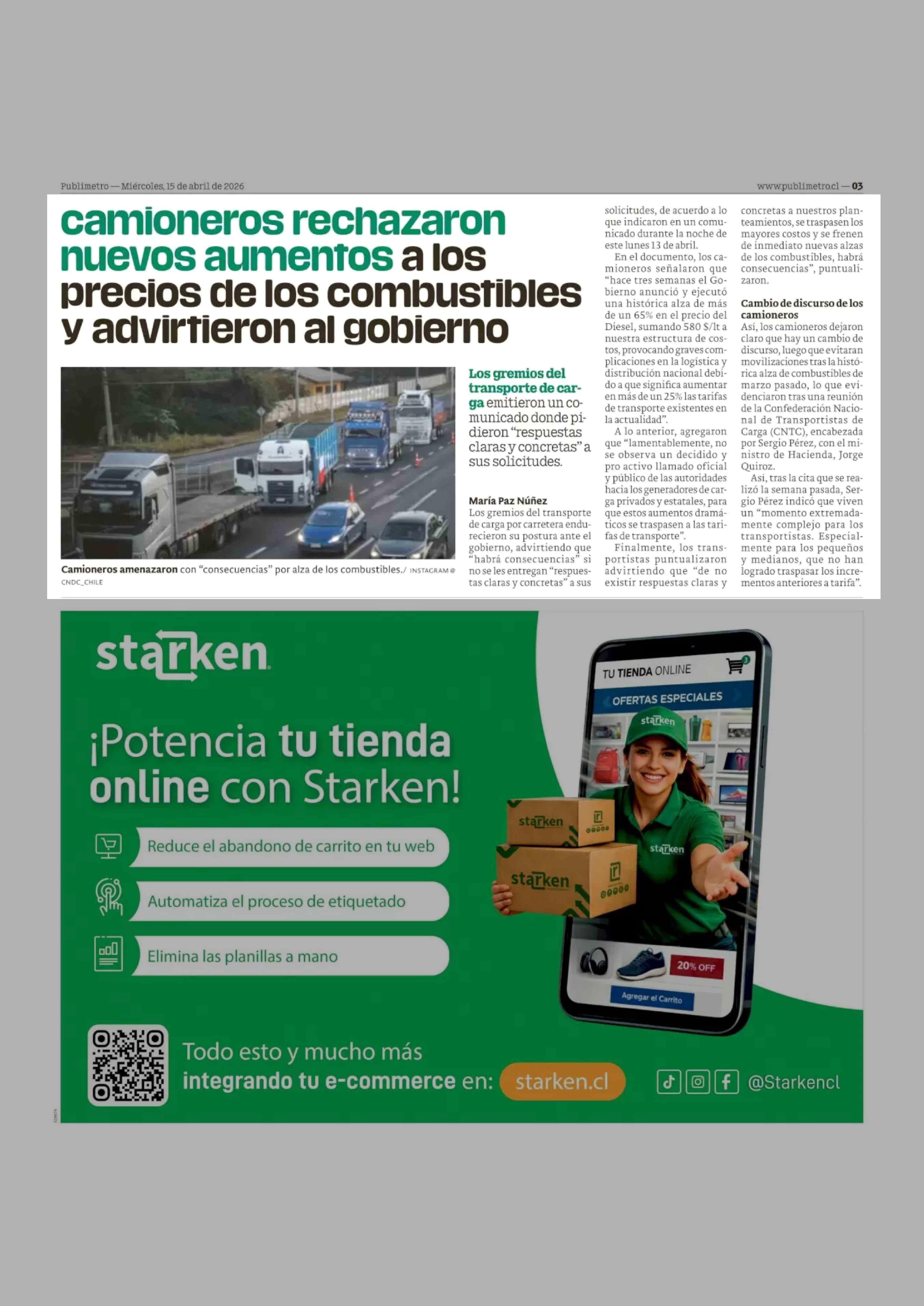 Camioneros rechazaron nuevos aumentos a los precios de los combustibles y advirtieron al gobierno 15-04-2026 Publimetro |
