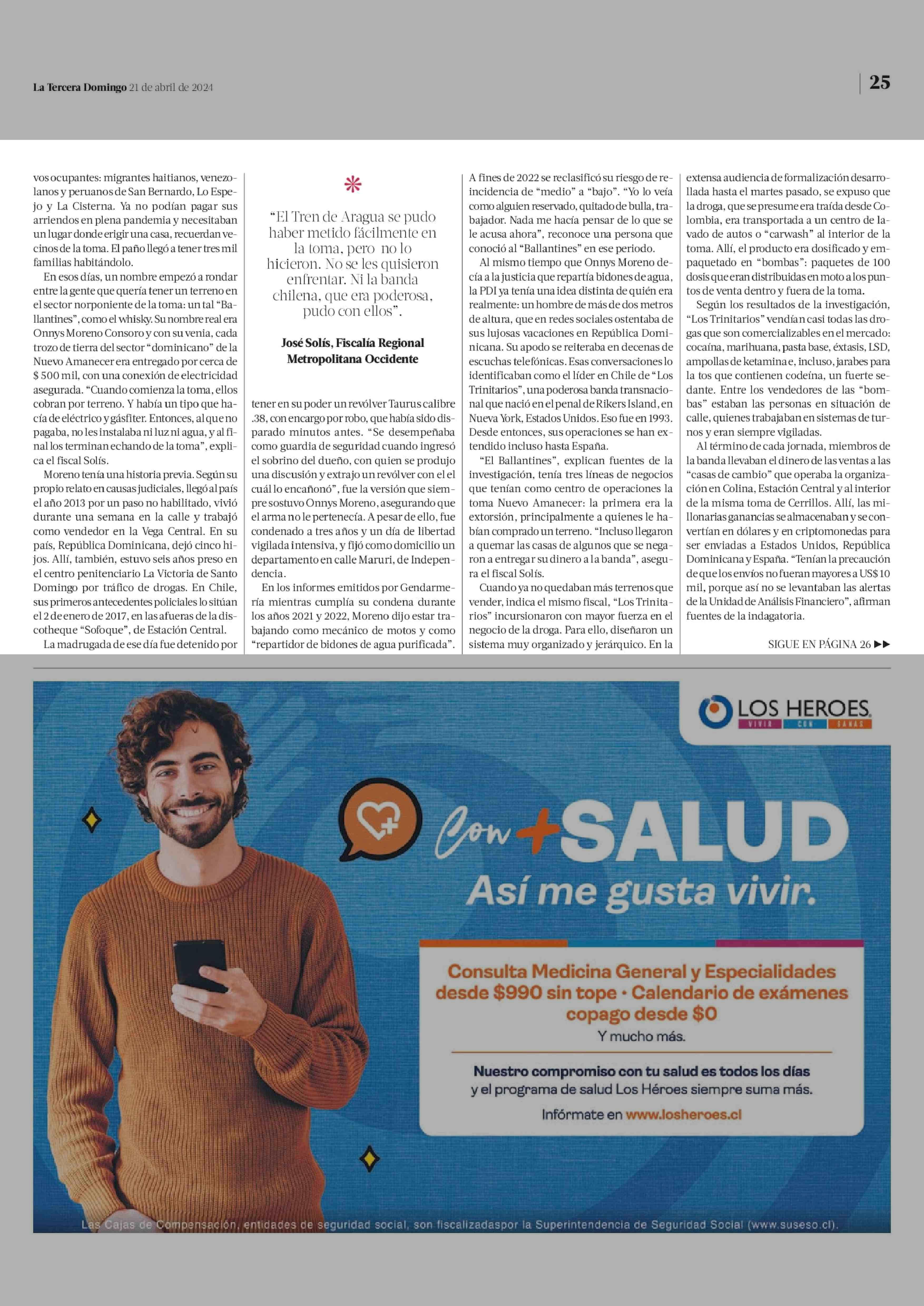 La caída de los “Trinitarios” la banda que dominó la toma más grande de Santiago 21-04-2024 La Tercera |