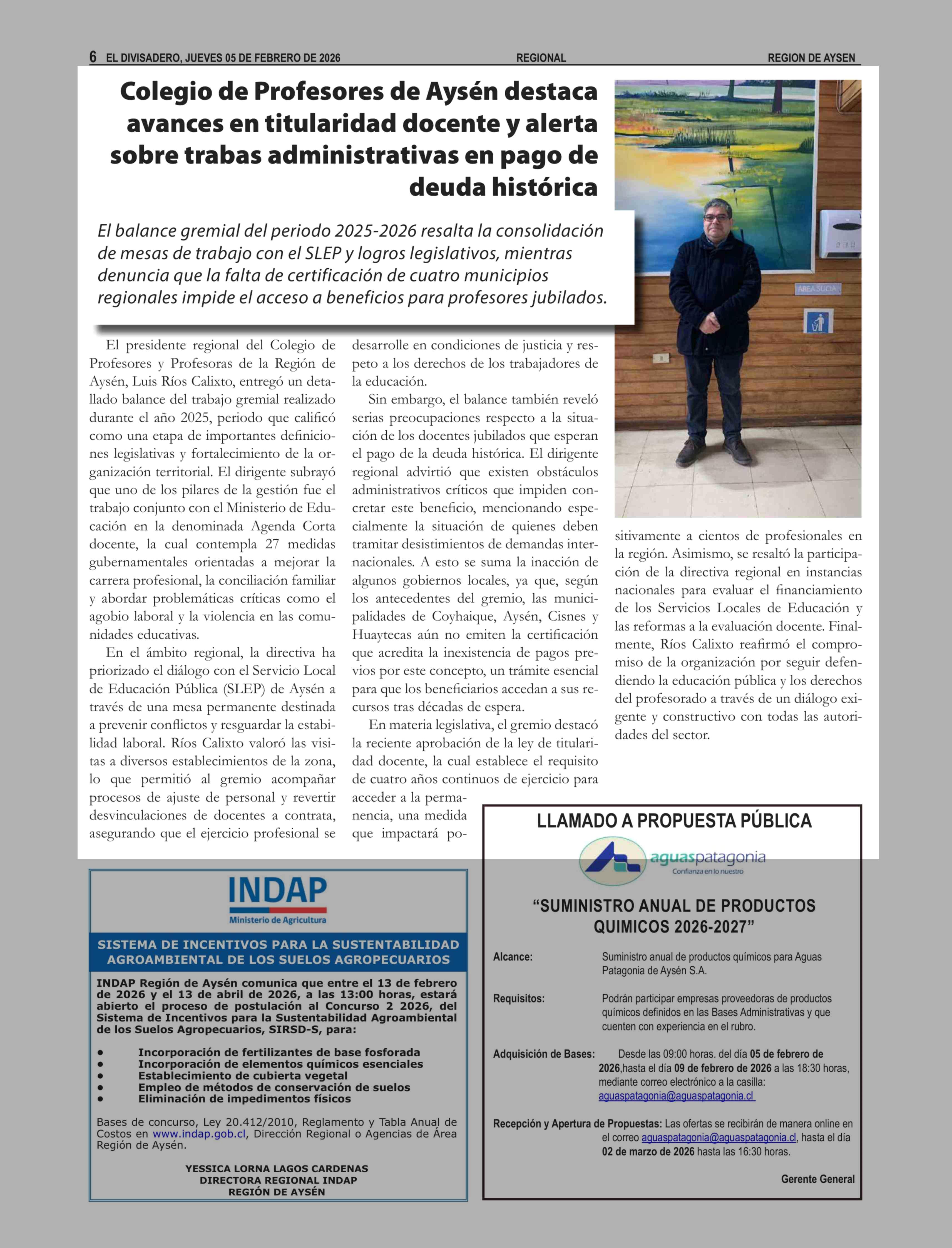 Título: Colegio de Profesores de Aysén destaca avances en titularidad docente y alerta sobre trabas administrativas en pago de deuda histórica