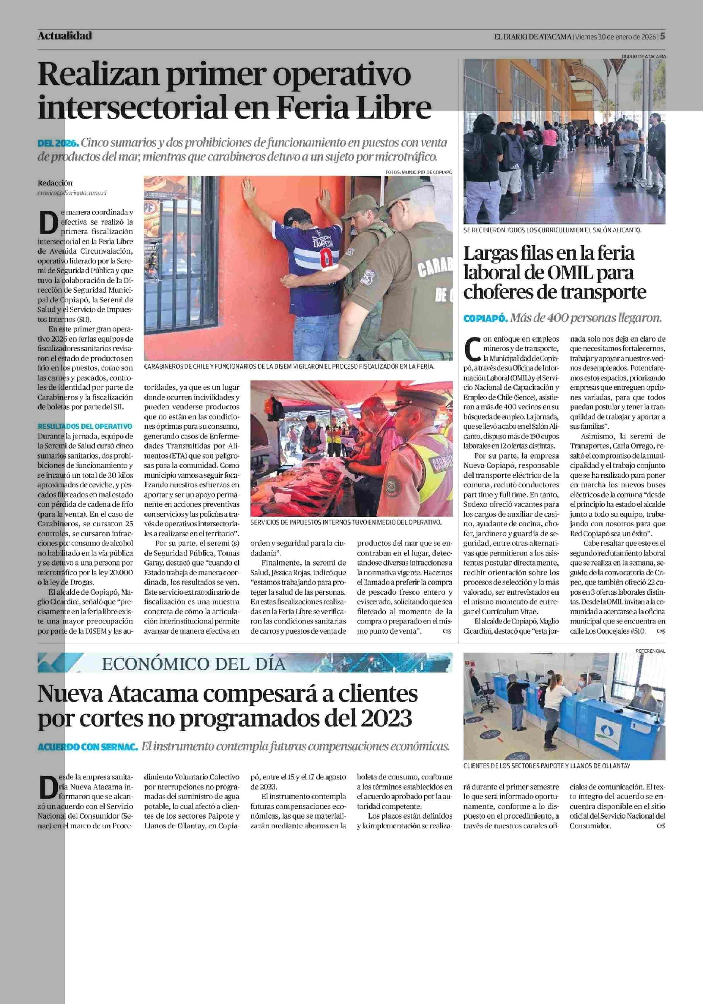 Realizan primer operativo intersectorial en Feria Libre 30-01-2026 El Diario de Atacama |