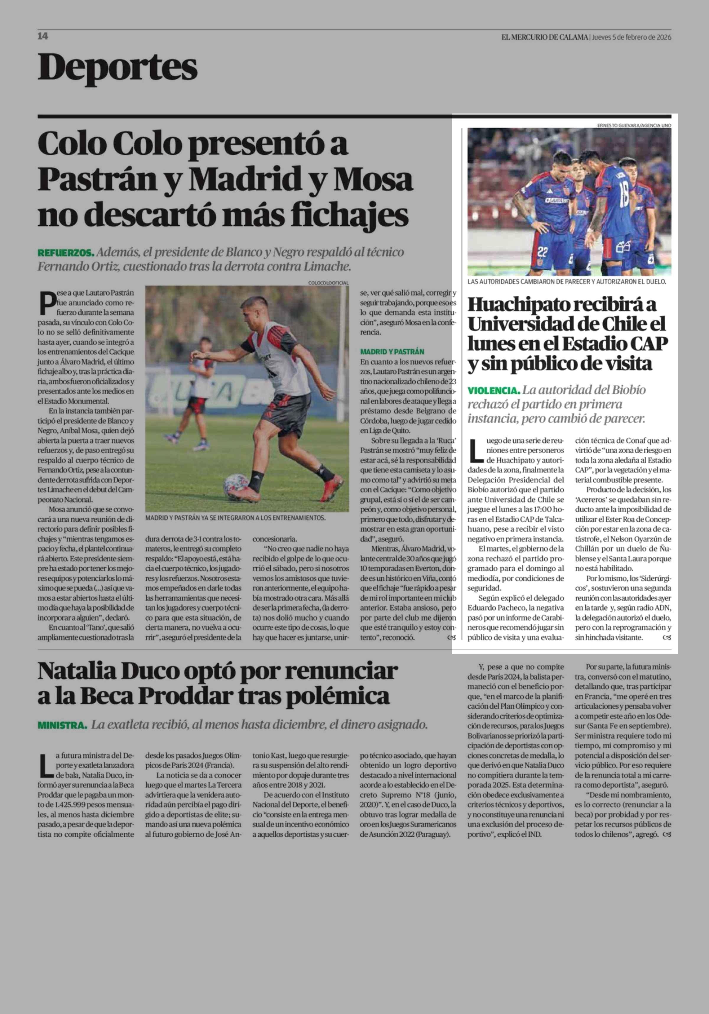 Huachipato recibirá a Universidad de Chile el lunes en el Estadio CAP y sin público de visita 05-02-2026 El Mercurio de Calama |