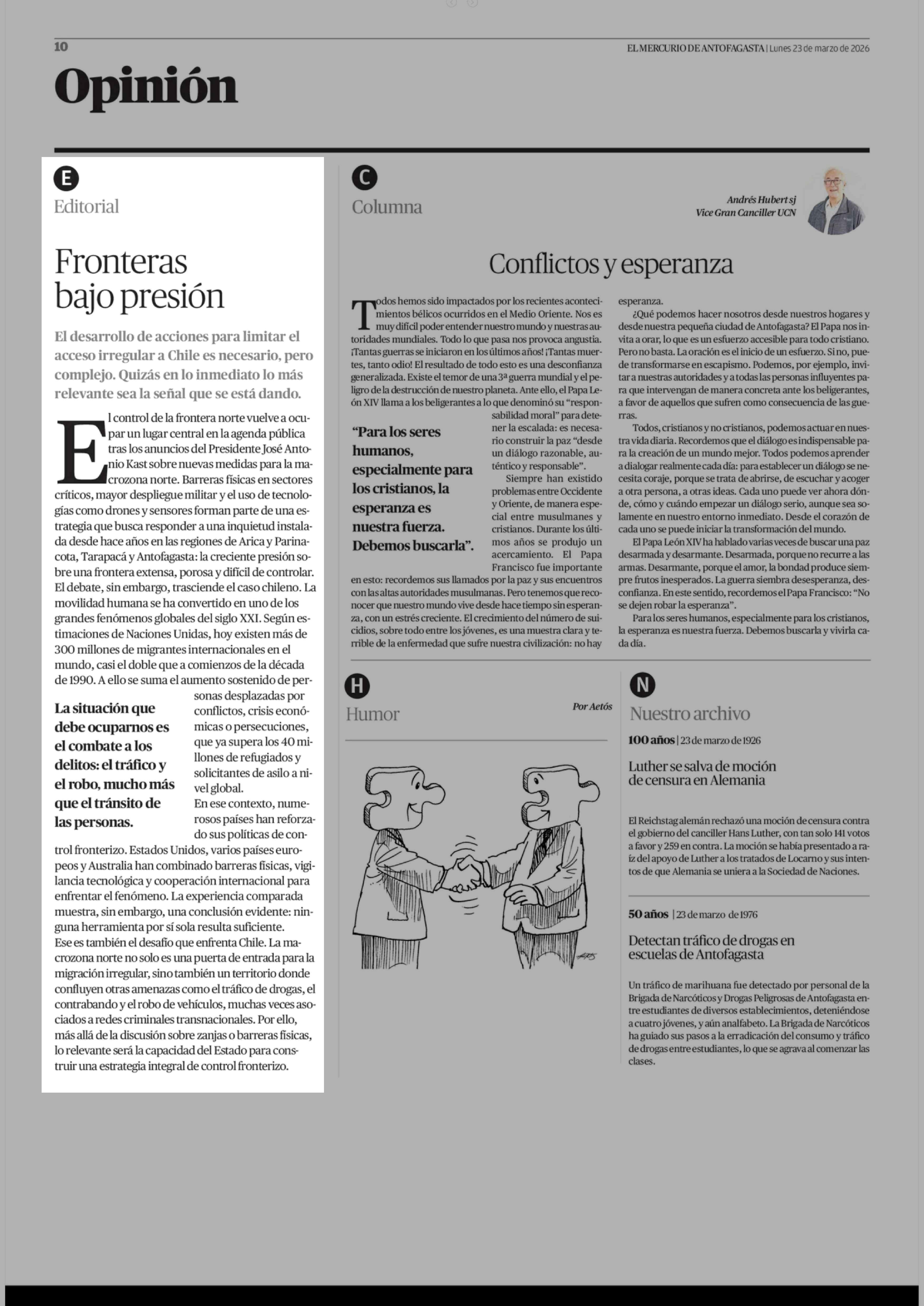 Editorial: Fronteras bajo presión 23-03-2026 El Mercurio de Antofagasta |