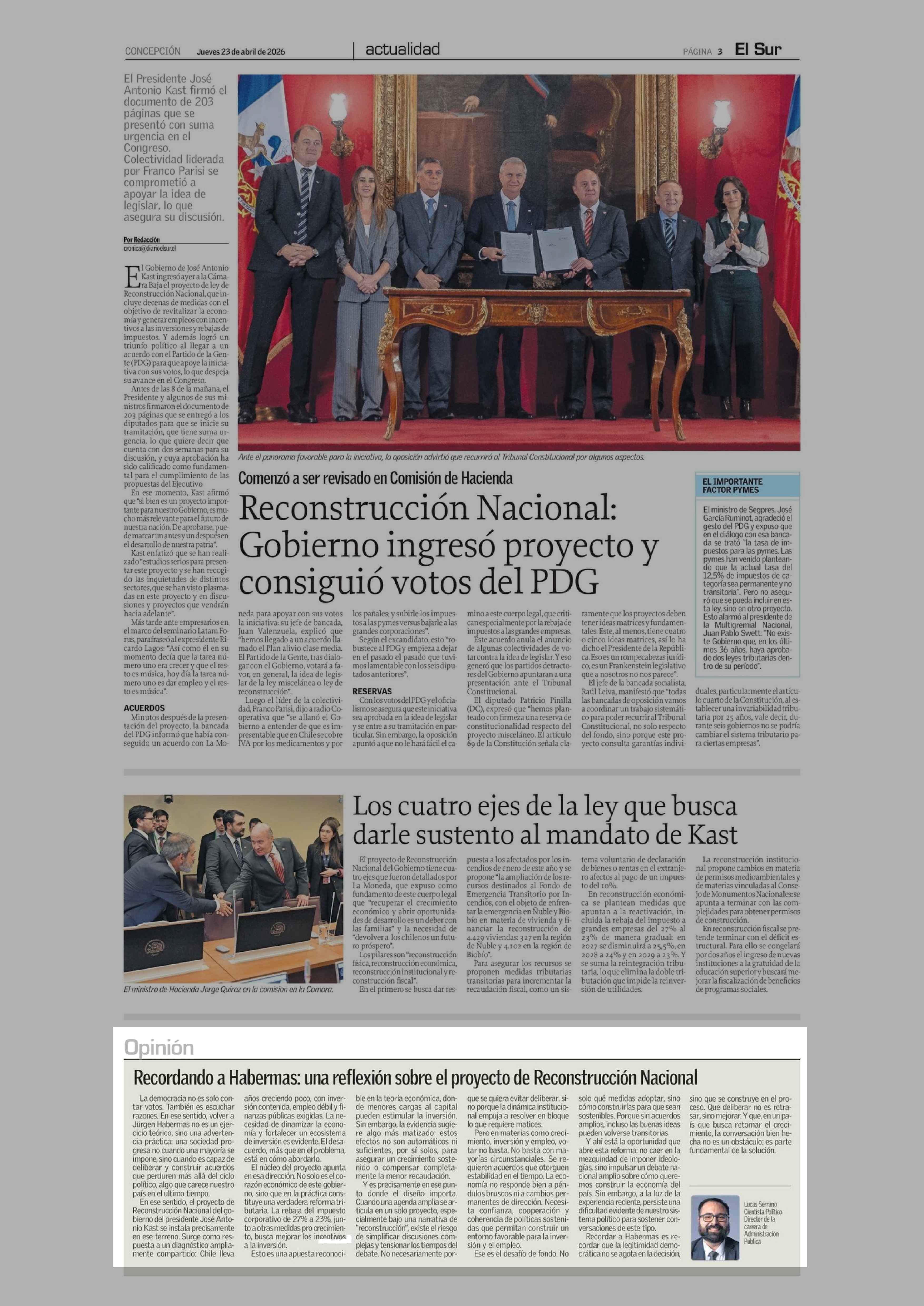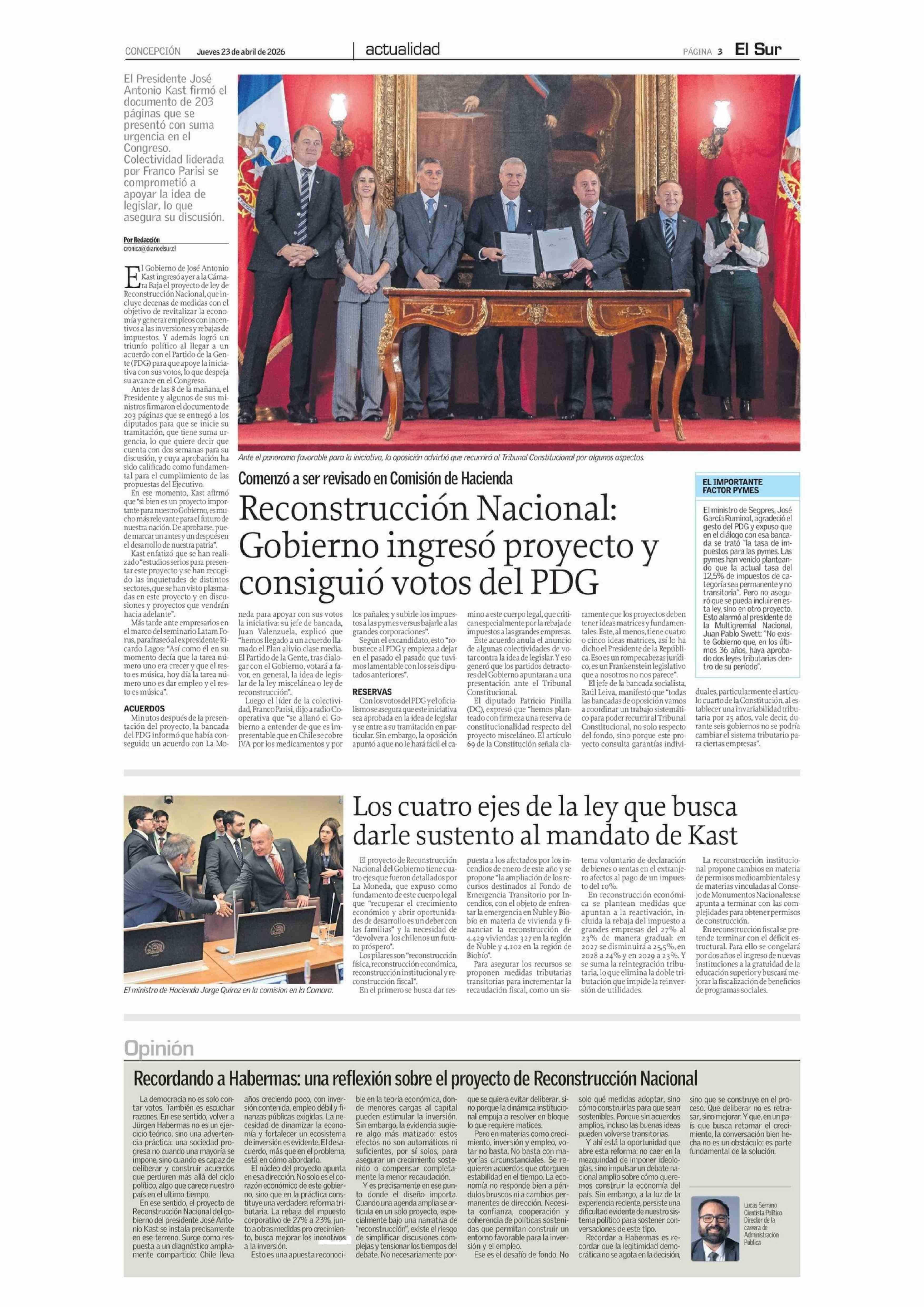 Columnas de Opinión: Recordando a Habermas: una reflexión sobre el proyecto de Reconstrucción Nacional 23-04-2026 El Sur |