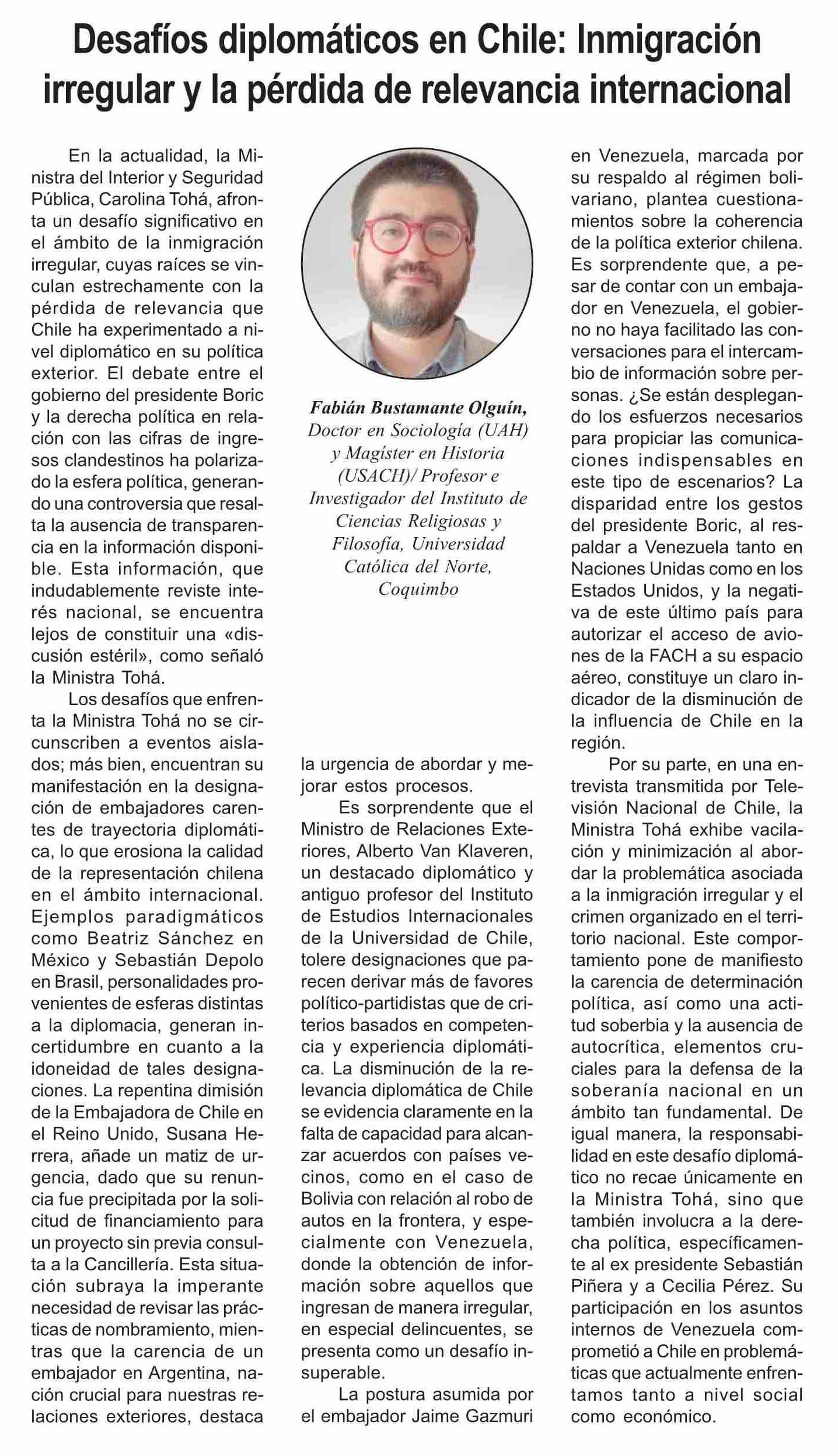 Desafíos diplomáticos en Chile: Inmigración irregular y la pérdida de relevancia internacional 23-11-2023 Diario la Región |