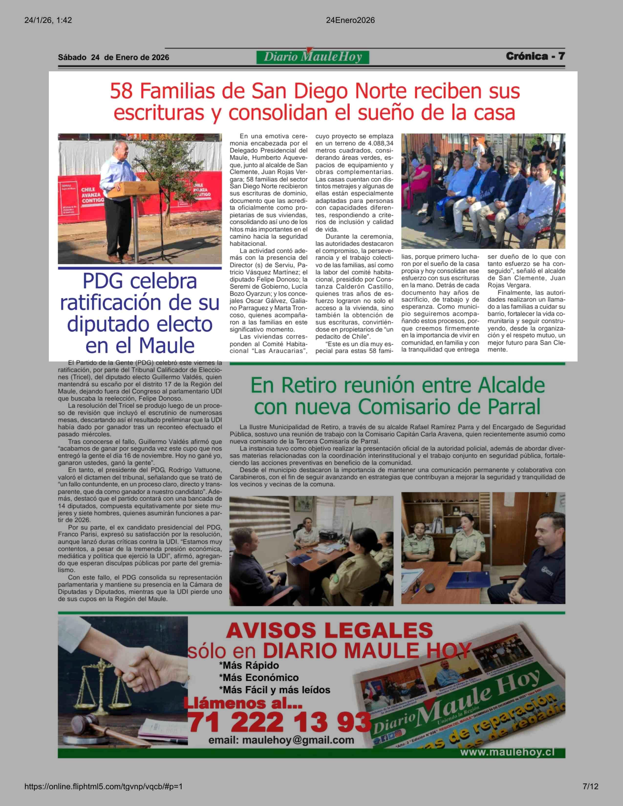 | Fecha: | 24-01-2026 | Sector: | Noticia general | Región: | Región del Maule |