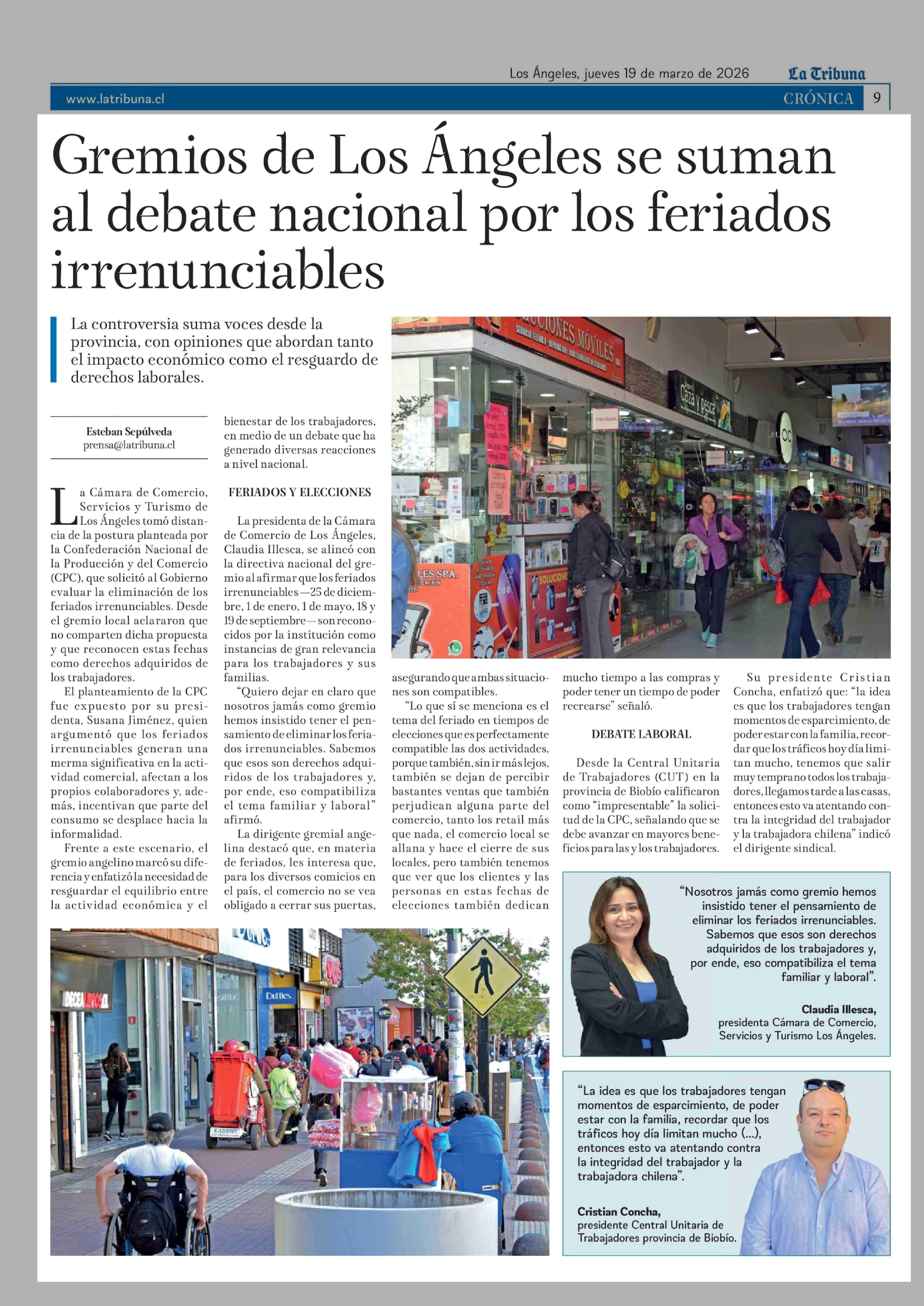 Título: Gremios de Los Ángeles se suman al debate nacional por los feriados irrenunciables